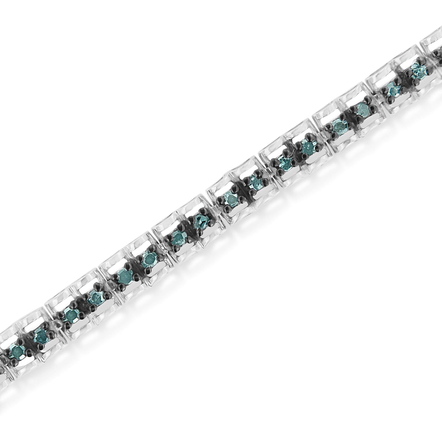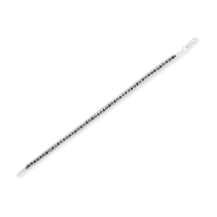 This Black Rhodium over .925 Sterling Silver 1.0 Cttw Blue Diamond Double-Link Tennis Bracelet by Haus of Brilliance is a study in contrast and elegance. Fancy blue, rose-cut diamonds—treated for a rich hue—are set in hinged double-link frames with unique “B” shaped borders. Designed in a 7-inch silhouette, the bracelet features 52 individual stones and secures with a lobster clasp. The black rhodium adds a dramatic touch, making this piece an eye-catching gift for anyone who embraces bold color and classic form.