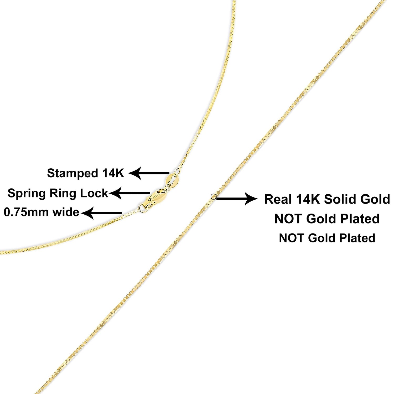 Unisex Solid 14K Gold 0.75mm Classic Box Chain Necklace
