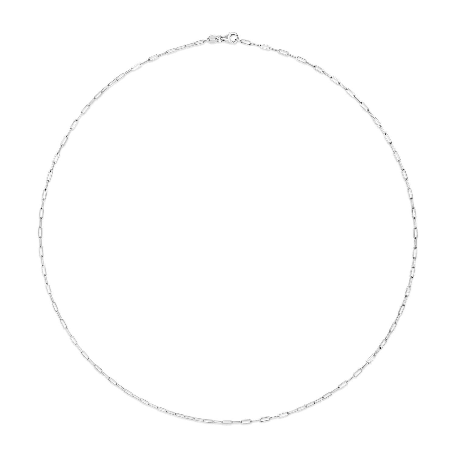 Handcrafted in 14K white gold. Necklace measures 18' and features a 1.5mm paperclip chain with a lobster claw clasp.