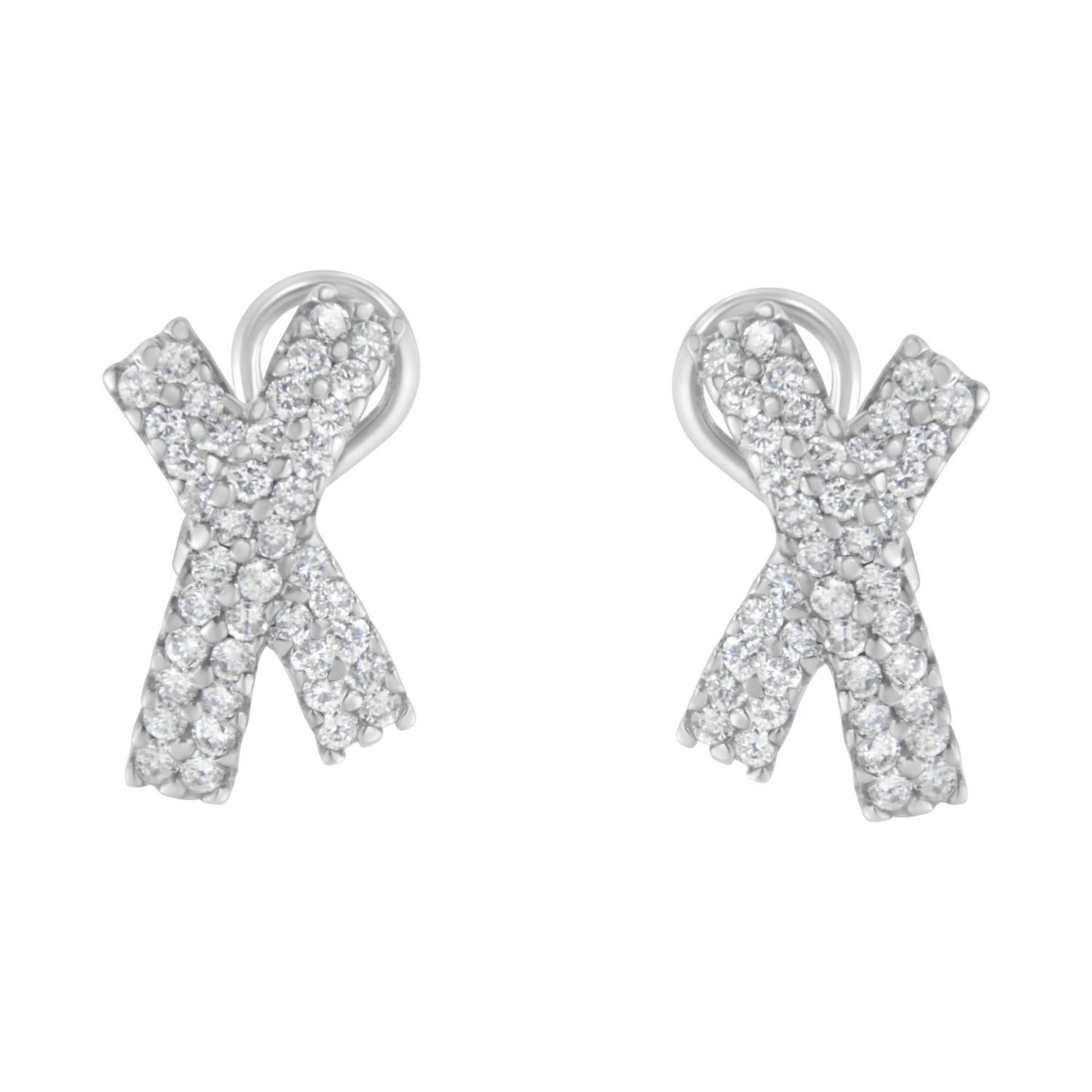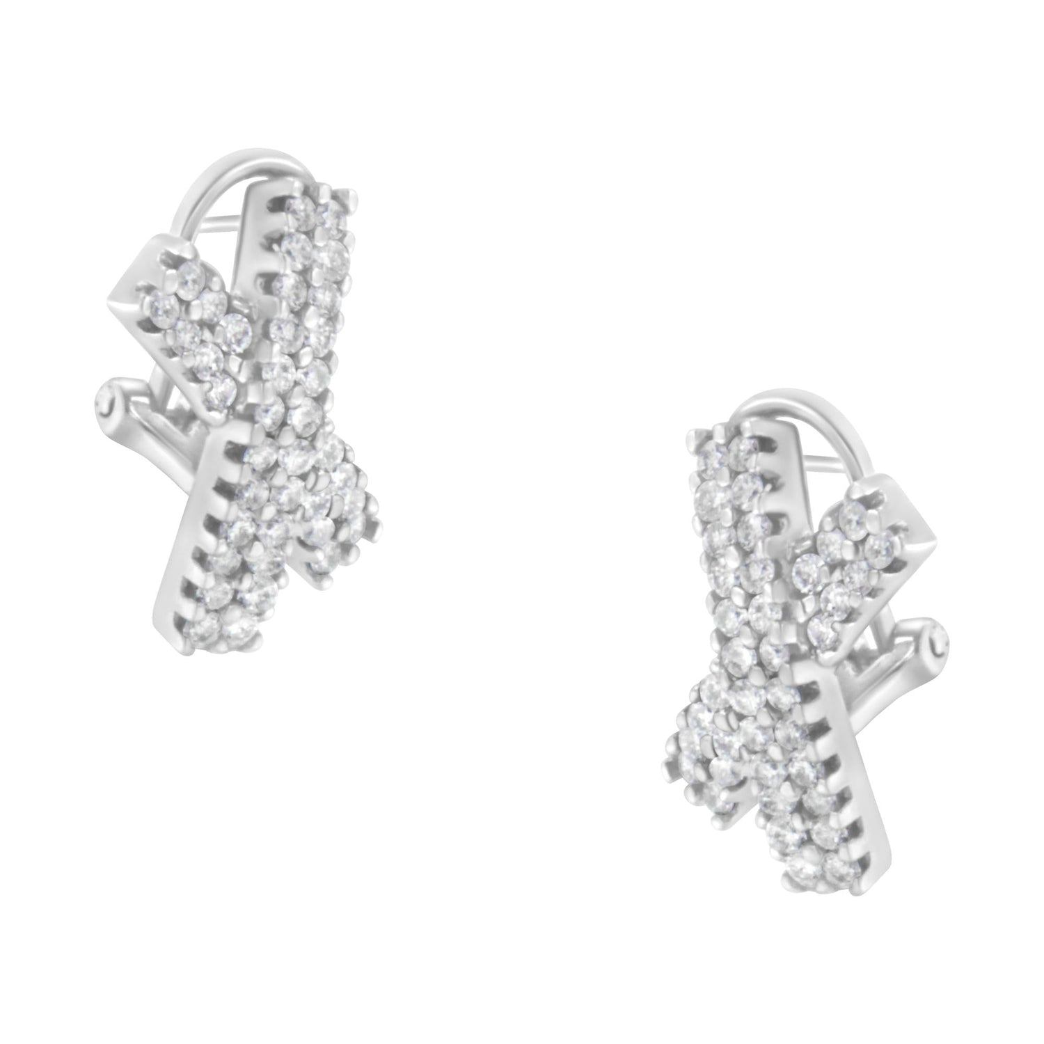 These 14K White Gold 2.0 Cttw Round-Brilliant Cut Diamond Domed X Shaped Omega Back Stud Earrings by Haus of Brilliance are a bold and elegant addition to your jewelry collection. The 2.0 carat total weight of diamonds is set in overlapping bands of pave-set round diamonds. The omega back post provides a secure fit, and the clip backing can be converted for non-pierced ears. These earrings are versatile enough for both daytime glamour and evening sparkle.