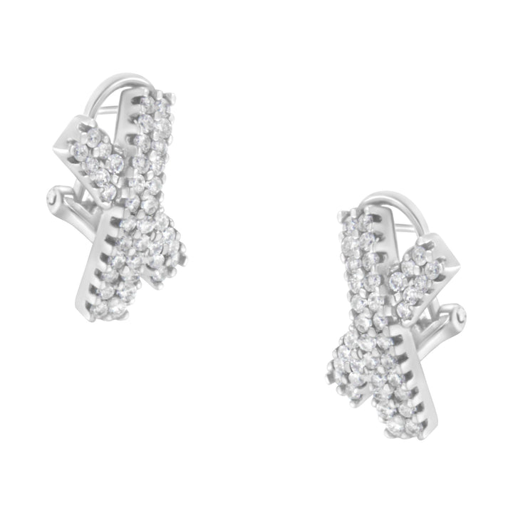 14K White Gold 2.0 Cttw Round-Brilliant Cut Diamond Domed X Shaped Omega Back Stud Earrings (H-I Color, I1-I2 Clarity)