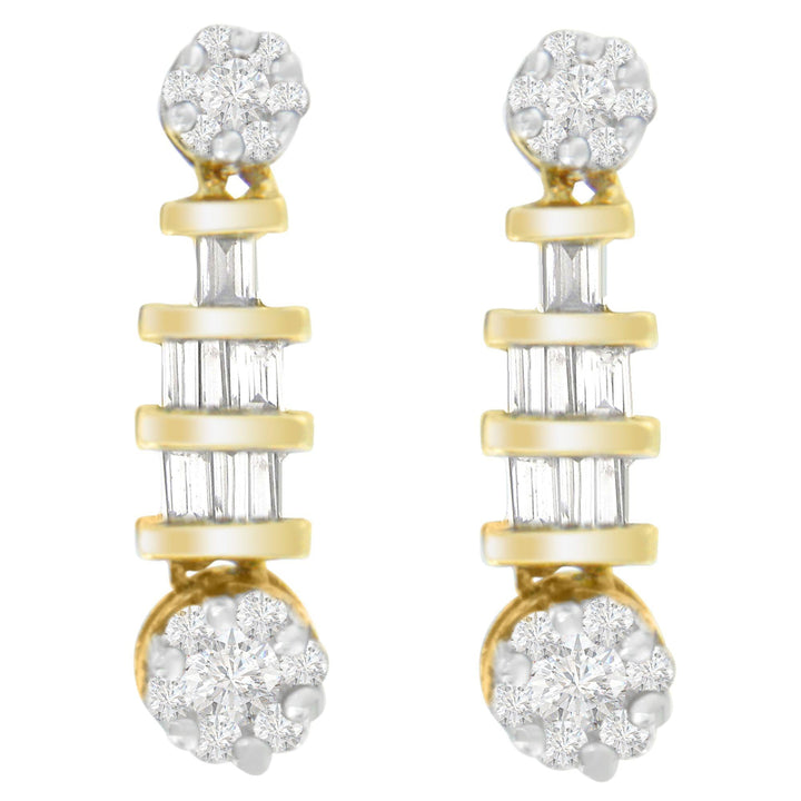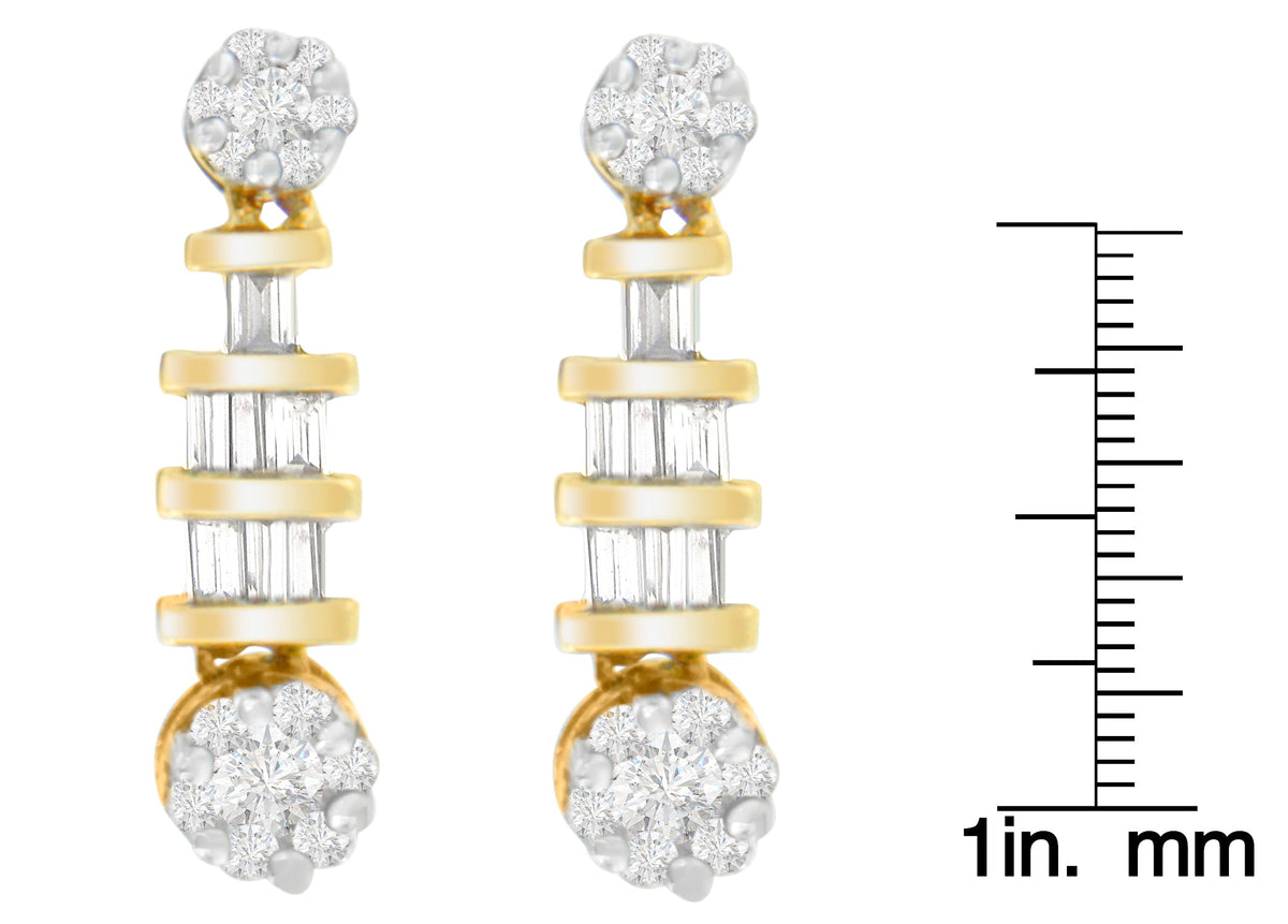 14K Yellow Gold 3/4ct. TDW Round and Baguette-cut Diamond Earrings(H-I,SI1-SI2)