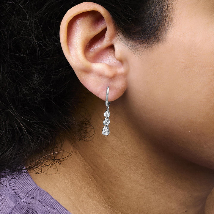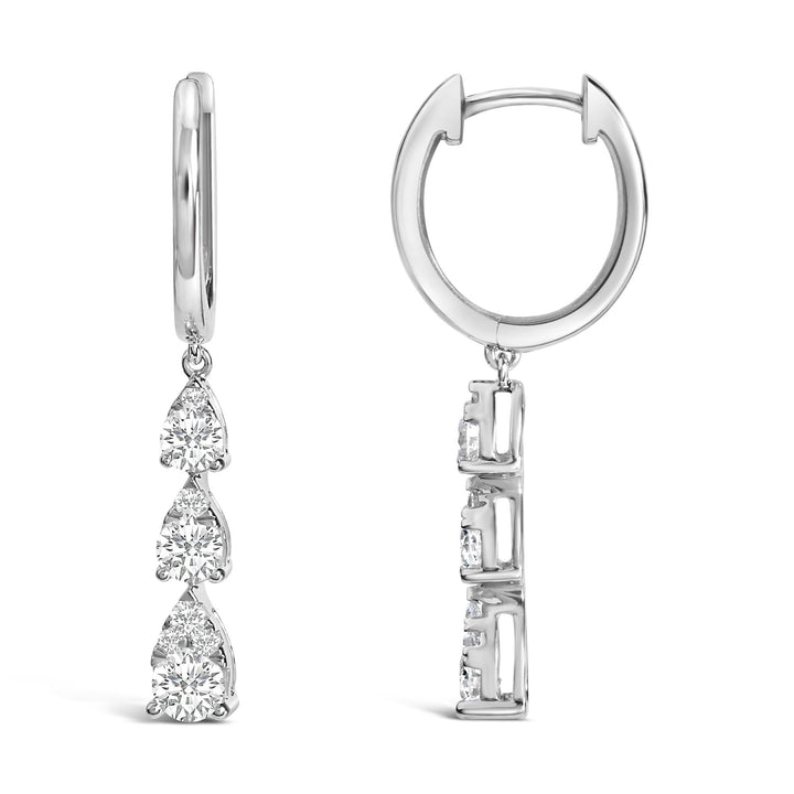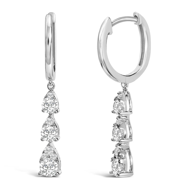 14K White Gold 3/4 Cttw Diamond 3 Stone Pear Cut Style Drop and Dangle Earrings (G-H Color, VS2-SI1 Clarity)