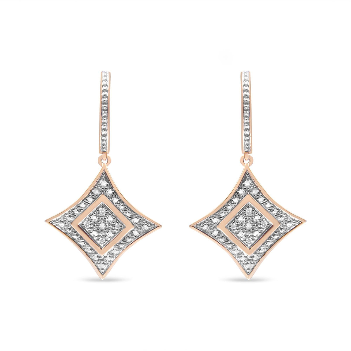 10K Rose Gold Plated Sterling Silver Round Cut Diamond Cushion Dangle Earrings (0.04 cttw, H-I Color, I2-I3 Clarity)