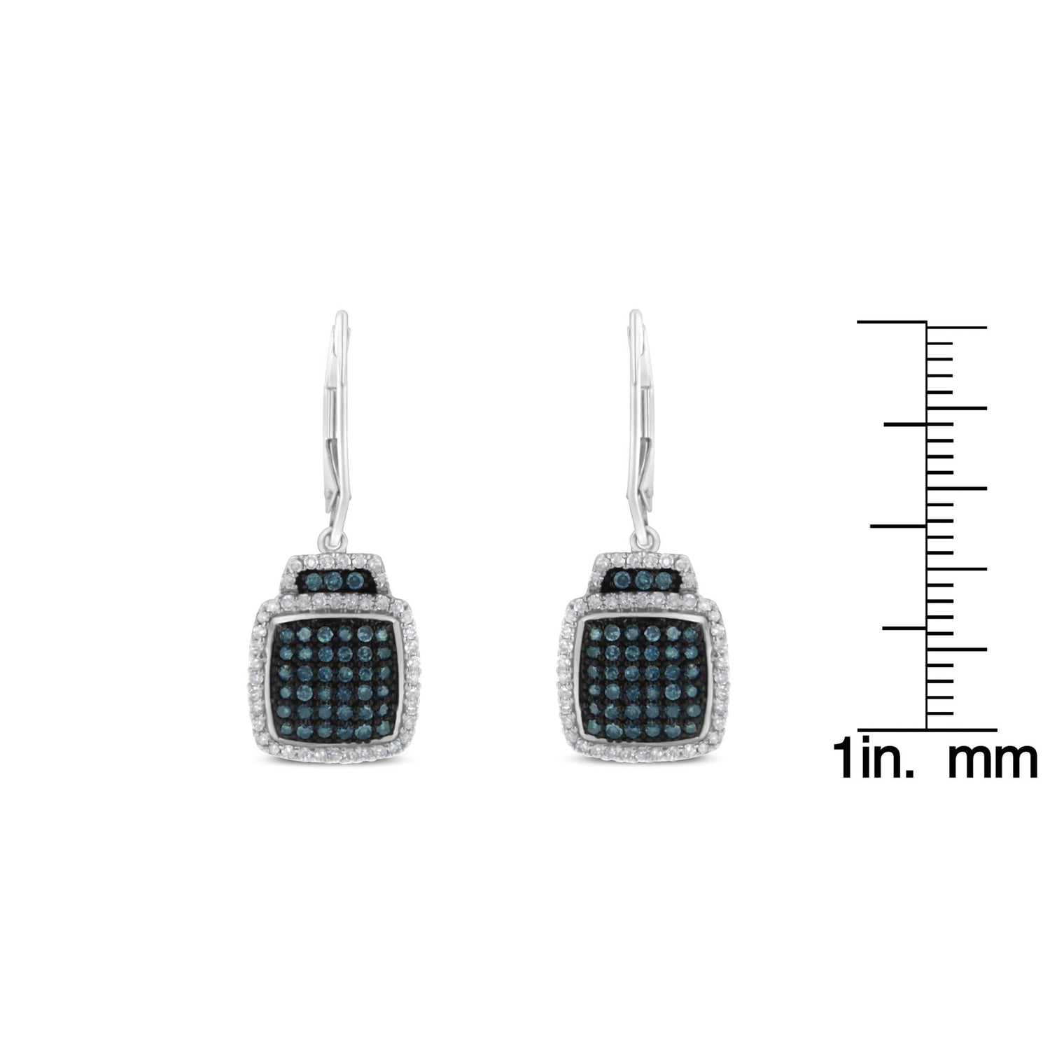 Black Rhodium over .925 Sterling Silver ¾ Cttw Blue and White Diamond Cushion Shaped Dangle Earrings (Enhanced Blue & I-J Color, I2-I3 Clarity)