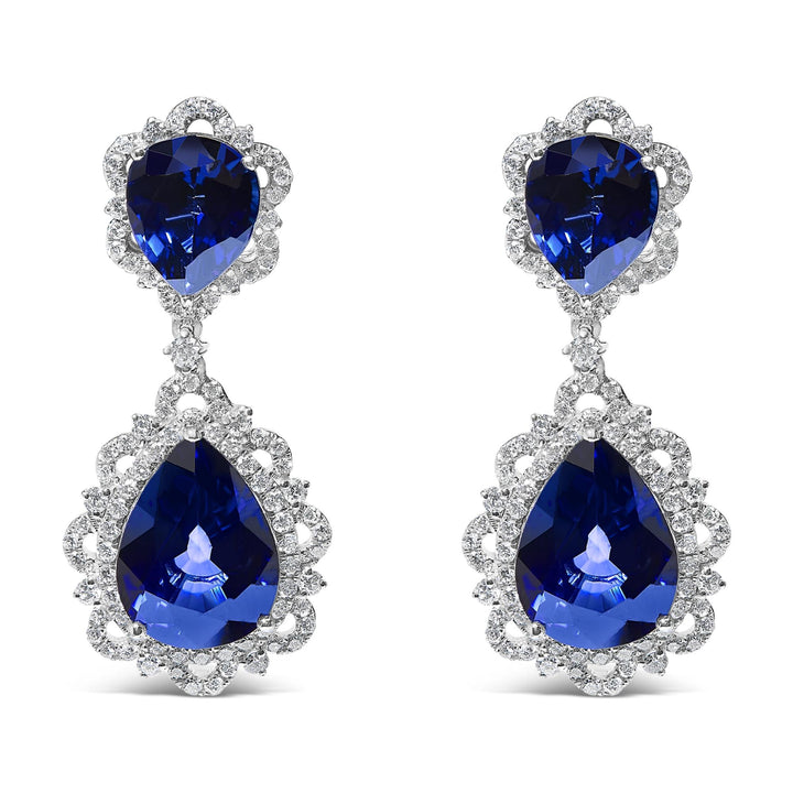 Embrace sophistication with the 18K White Gold Blue Sapphire and Diamond 2.00 Cttw Diamond Halo Drop and Dangle Earrings by Haus of Brilliance. These earrings feature pear-shaped blue sapphires surrounded by 2 carats of dazzling diamonds. With their H-I color and SI1-SI2 clarity, the diamonds enhance the depth of the sapphires, creating a captivating contrast. The graceful drop design and secure post and butterfly backings make these earrings perfect for any occasion.