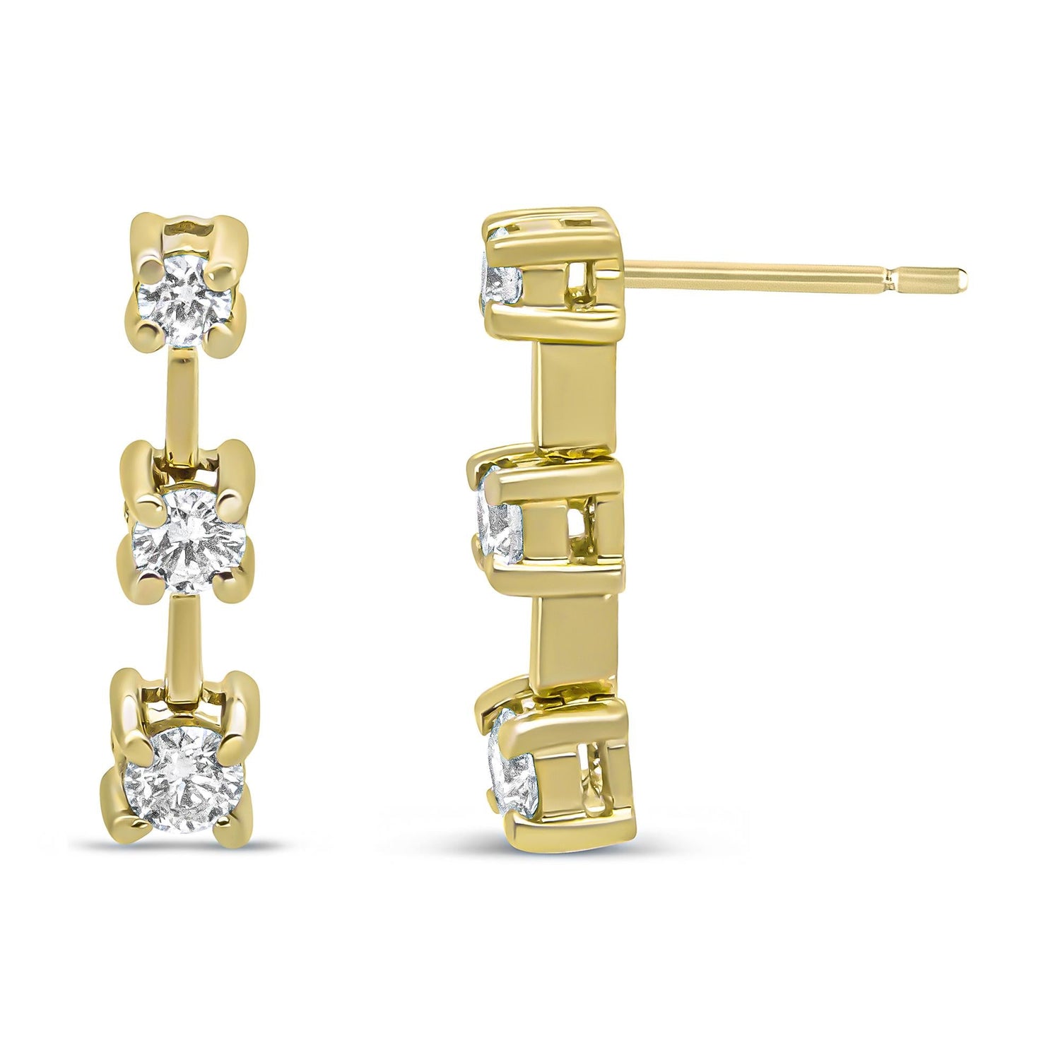 14K Gold Round Diamond 3 Stone Graduated Linear Drop Past, Present and Future Stud Earrings (H-I Color, SI1-SI2 Clarity)