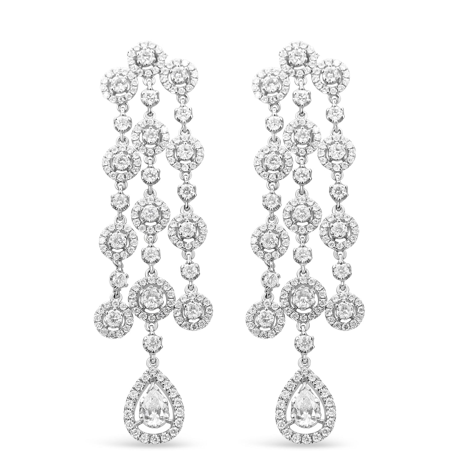 18K White Gold 4 3/4 Cttw Diamond Double Teardrop Waterfall Dangle Earrings (H-I Color, VS1-VS2 Clarity)
