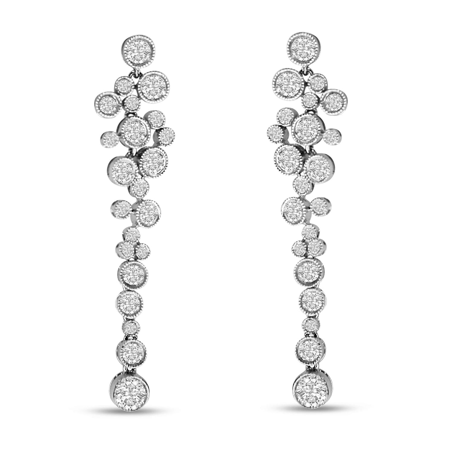 18K White Gold 3.15 Cttw Round Diamond Waterfall Drop Dangle Stud Earrings (H-I Color, VS1-VS2 Clarity)