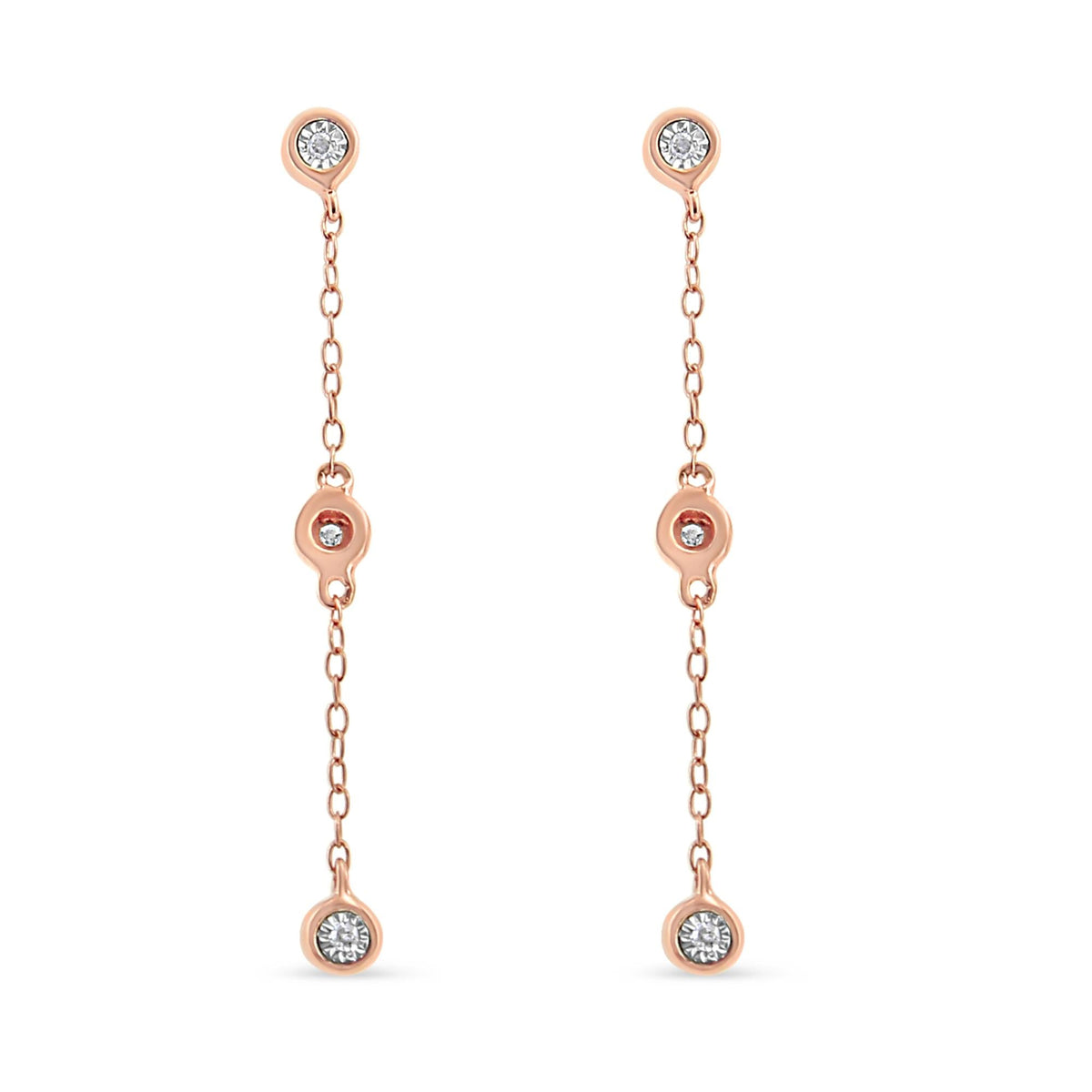 10K Rose Gold Plated .925 Sterling Silver 1/15 Cttw Diamond Dangle Earring (I-J Color, I3-Promo Clarity)