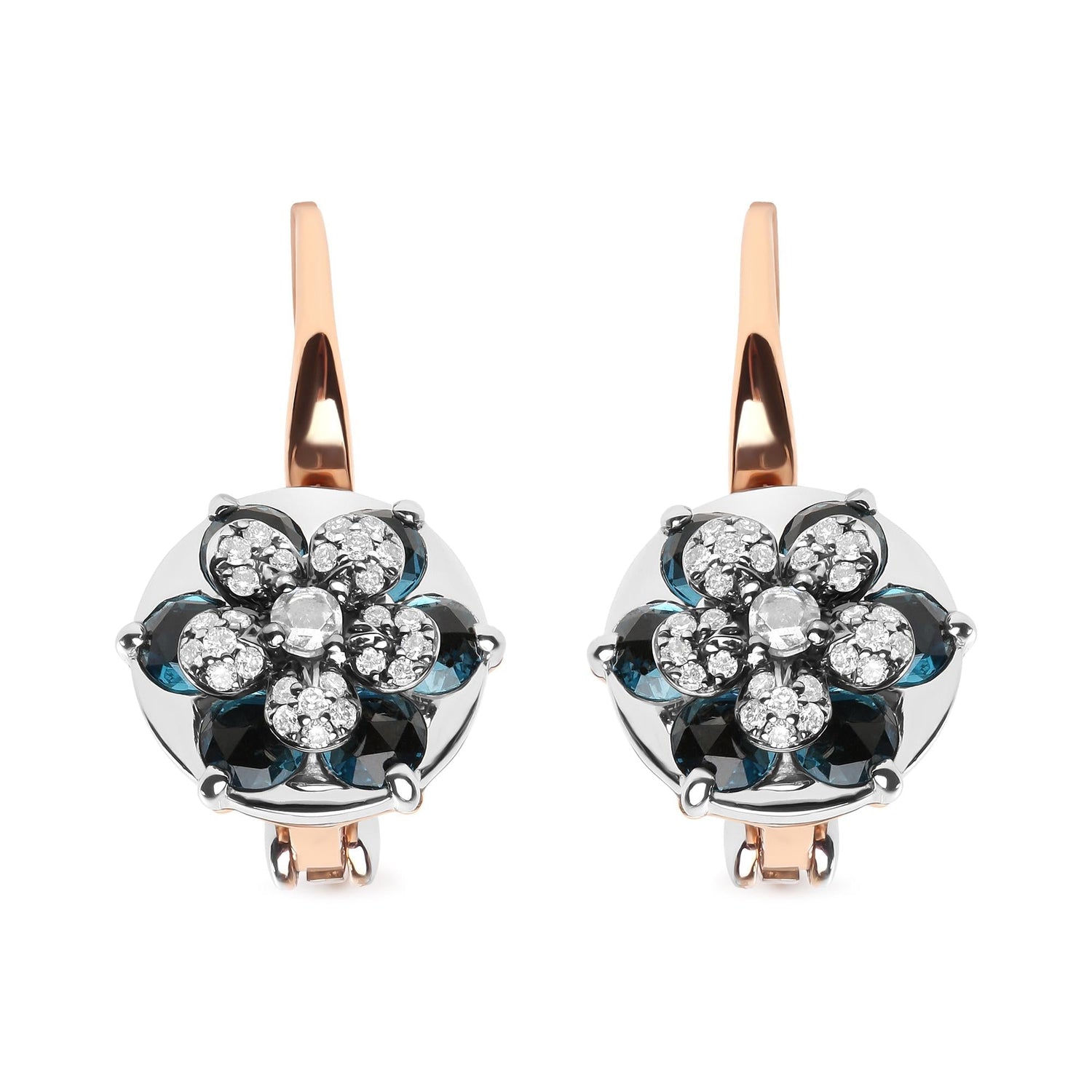 18K Rose and White Gold 1/3 Cttw Round Diamonds and Round London Blue Topaz Gemstone Cluster Floral Drop Hoop Earrings (G-H Color, SI1-SI2 Clarity)