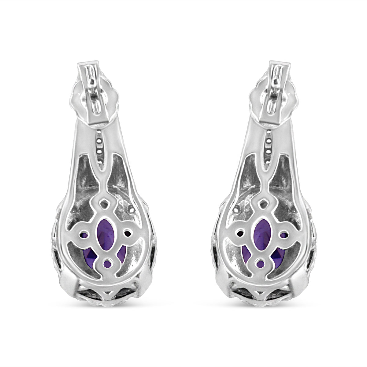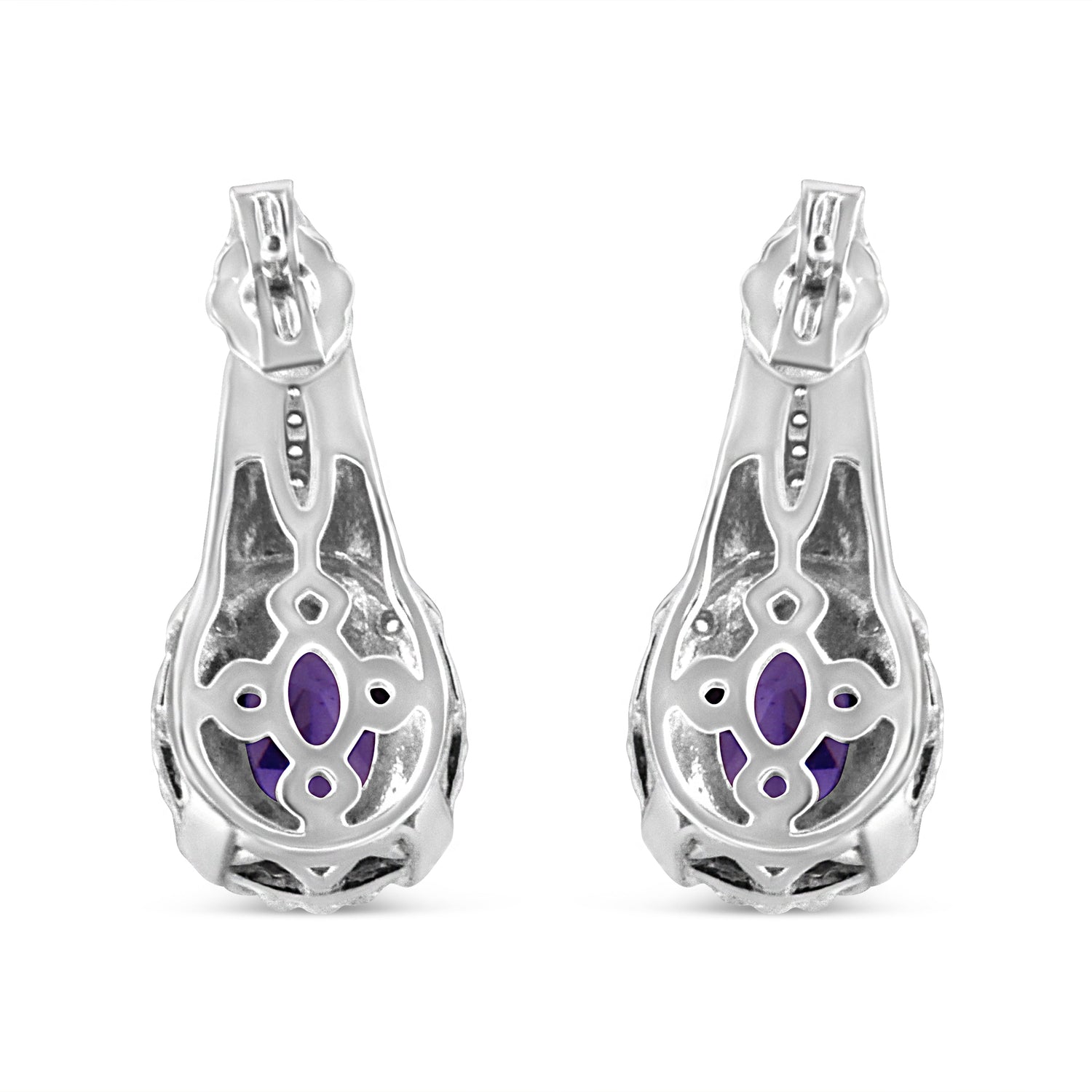 .925 Sterling Silver 8x6 MM Natural Oval Purple Amethyst Gemstone and Diamond Accent Art Deco Style Drop and Dangle Earrings (I-J Color, I1-I2 Clarity)