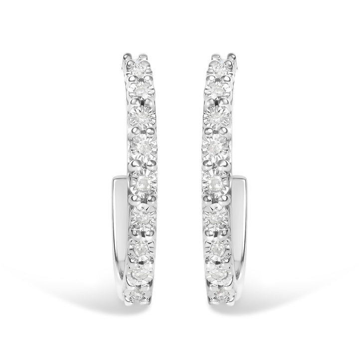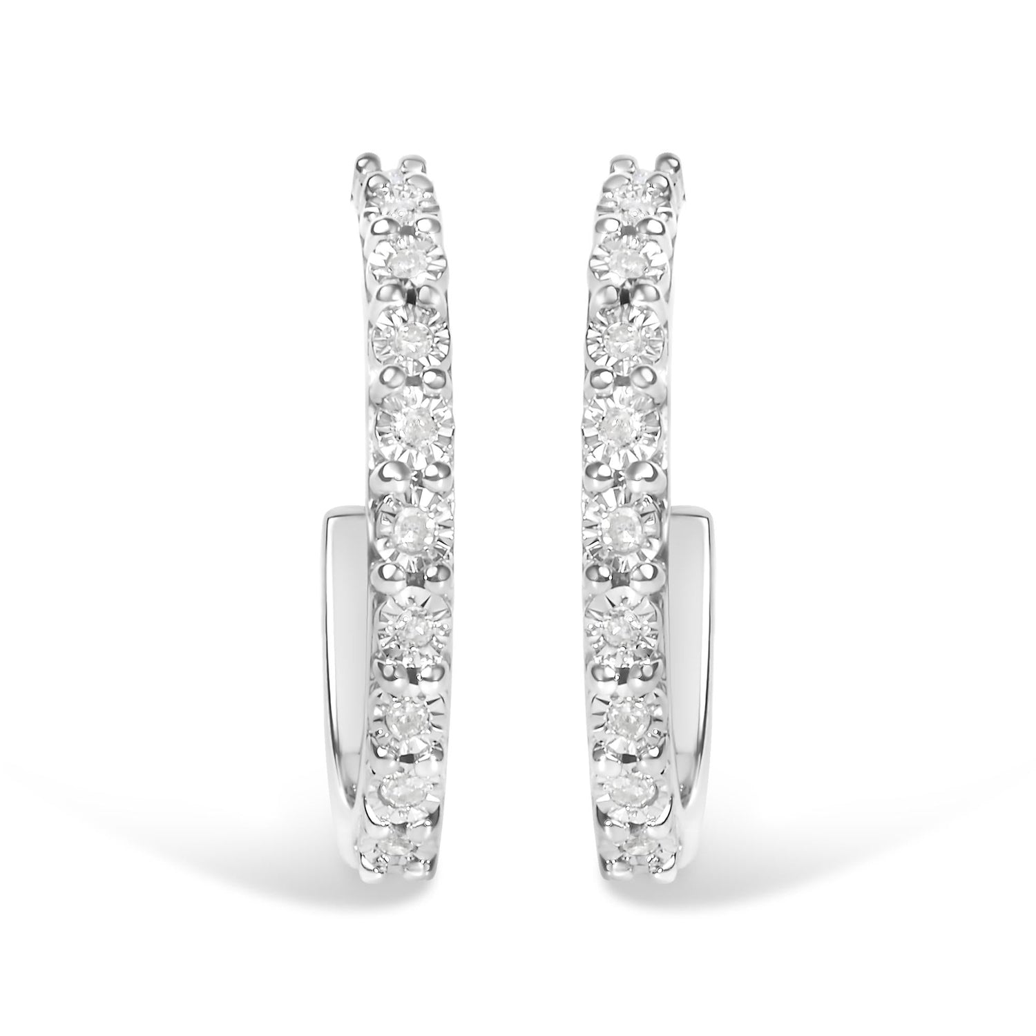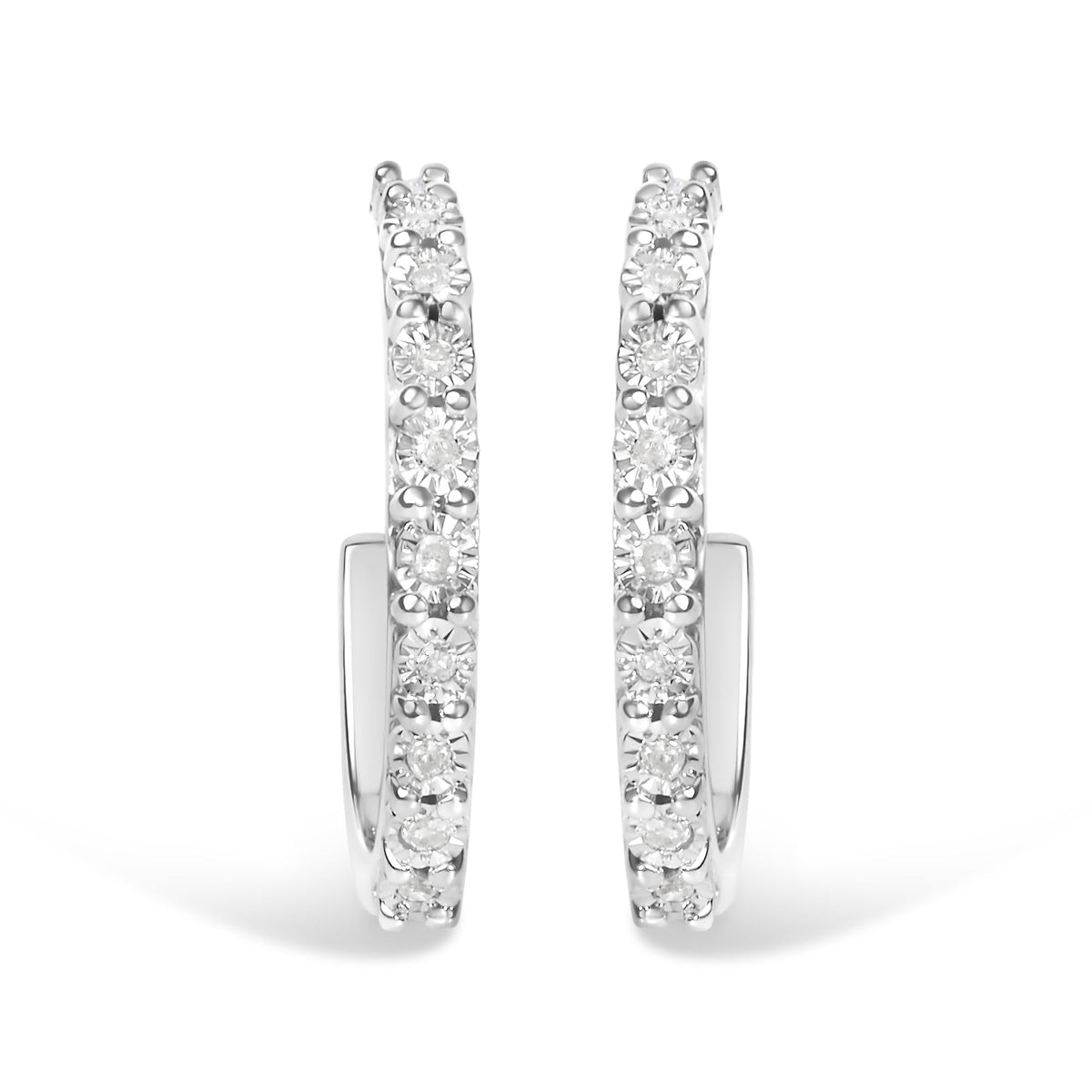 .925 Sterling Silver 1/10 Cttw Diamond Miracle Set J-Hoop Earring (I-J Color, I3 Clarity)