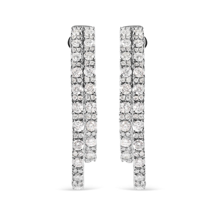 14K White Gold 4.0 Cttw Diamond Asymmetrical Inside Out Double-Hoop Earrings (I-J Color, I1-I2 Clarity)