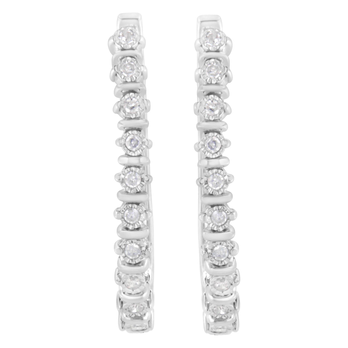 .925 Sterling Silver 1/4 cttw Miracle-Set Round-Cut Diamond Hoop Earring (I-J Color, I2-I3 Clarity)
