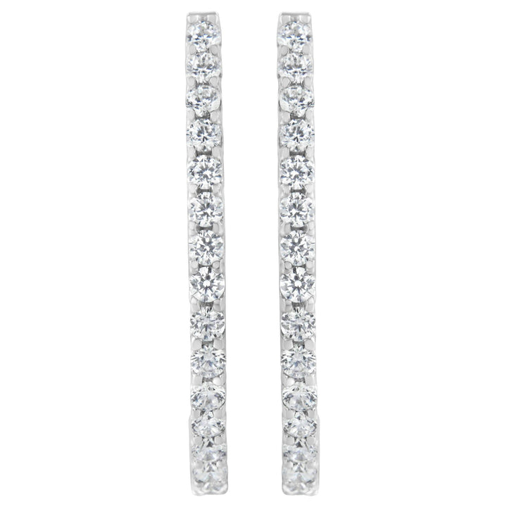 Crafted in 14K white gold with 2.0 Cttw of I-J color, I1-I2 clarity round diamonds. Hinged leverback closures.
