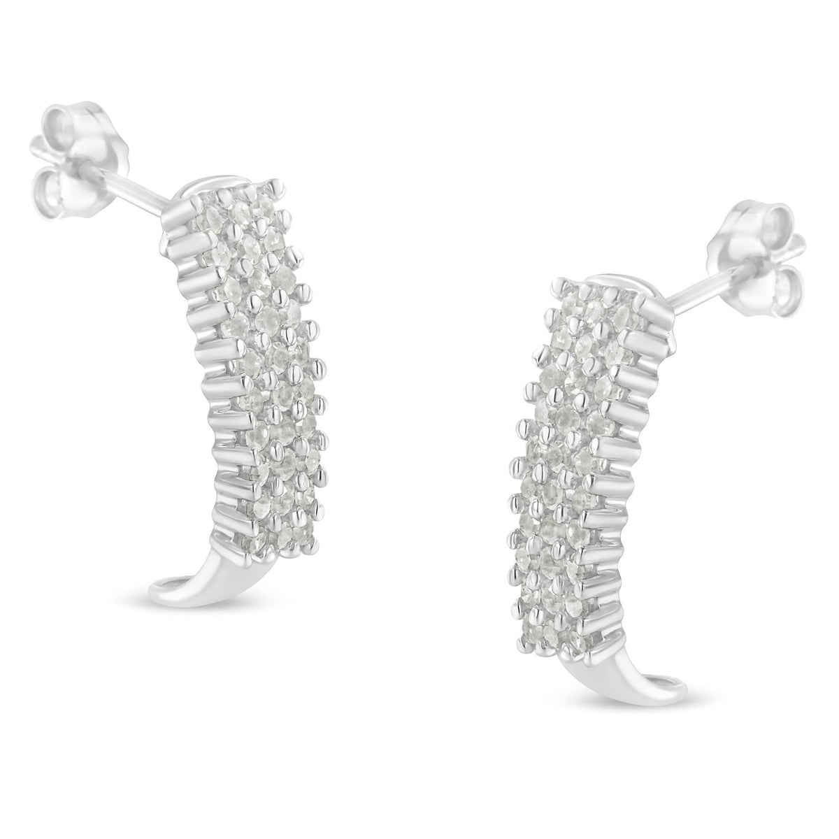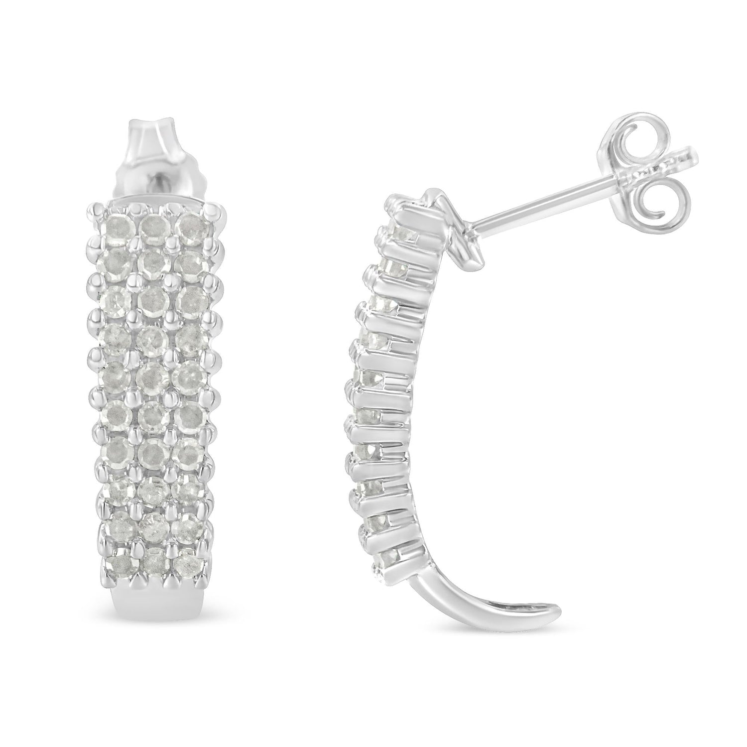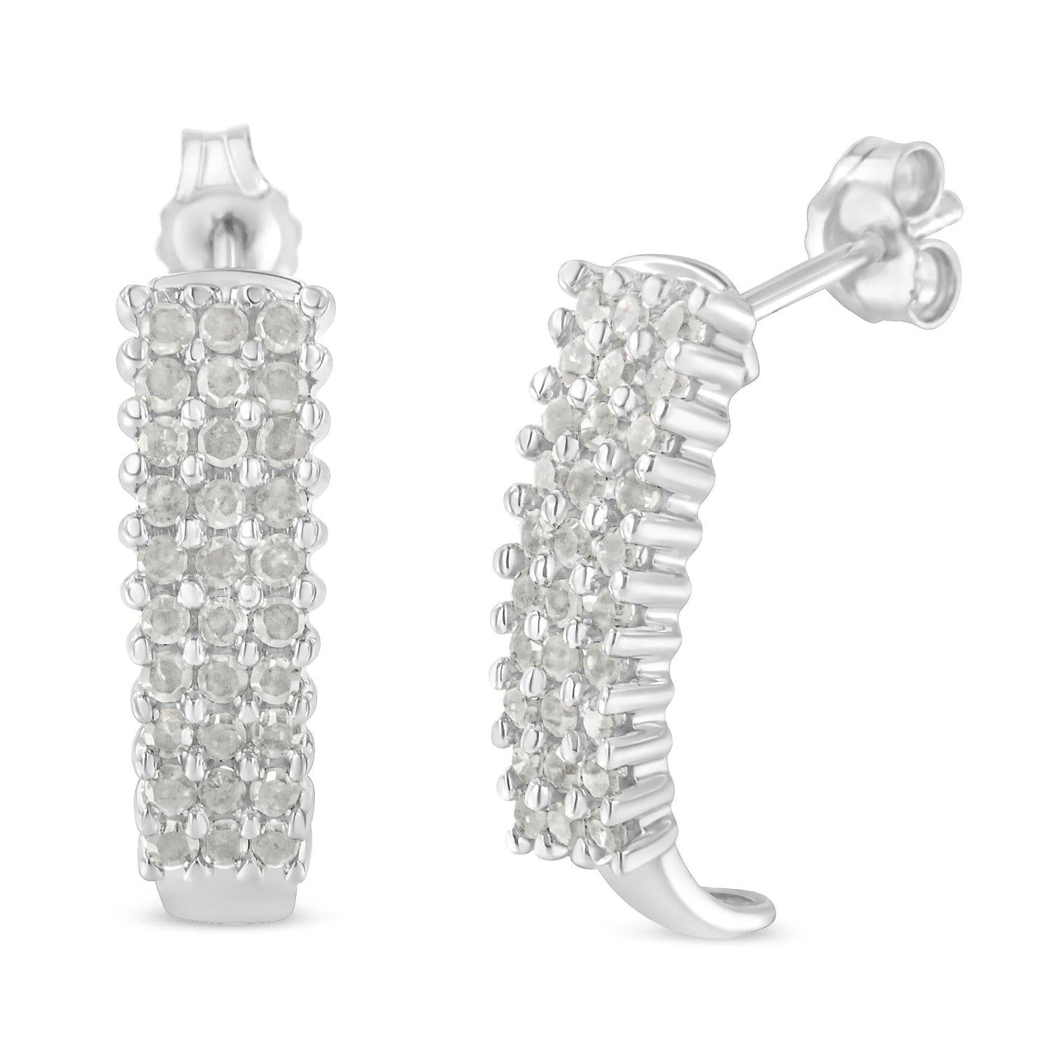 Sterling Silver Rose Cut Diamond J Shape Hoop Earrings (1 cttw, I-J Color, I2-I3 Clarity)
