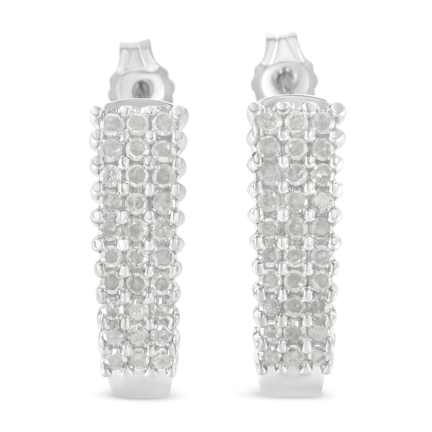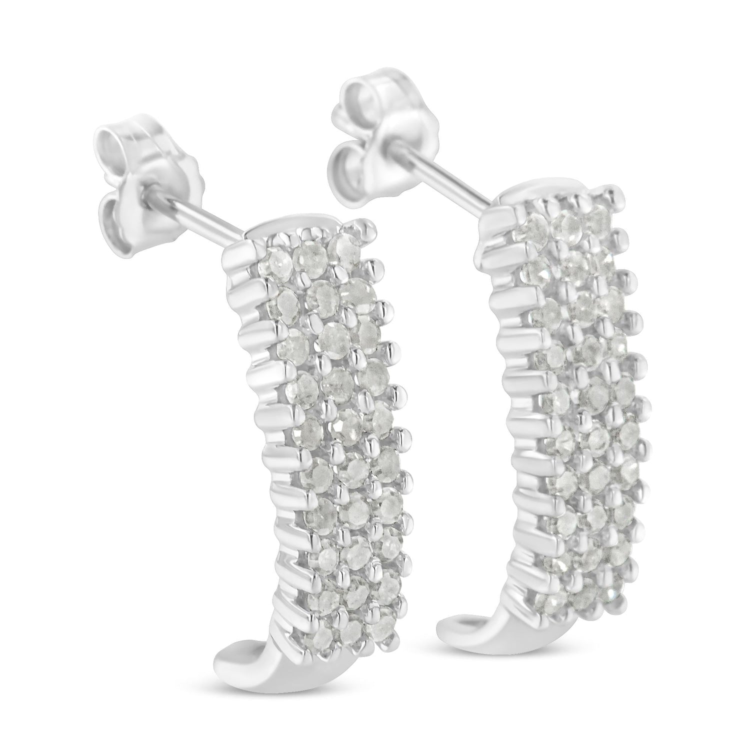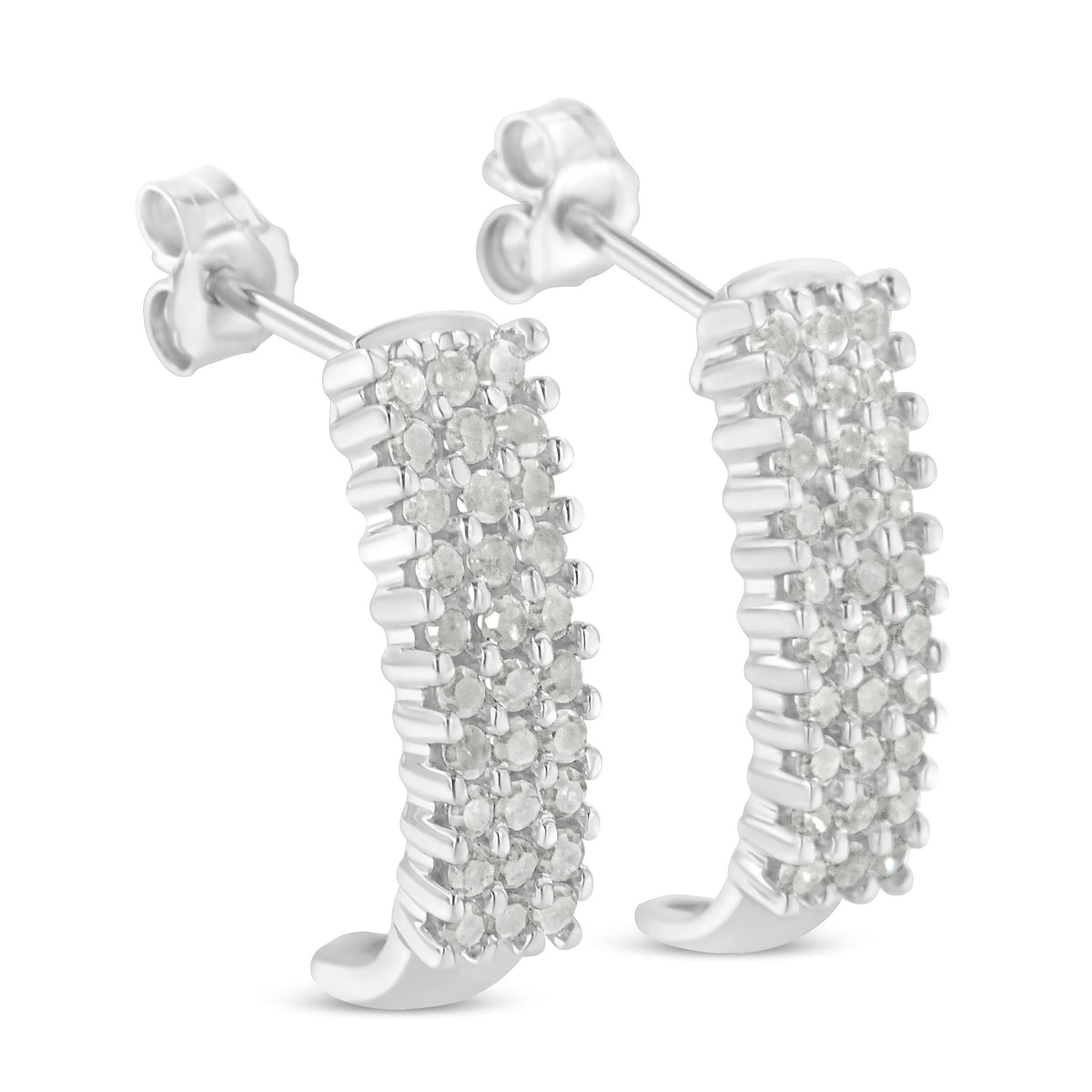 Sterling Silver Rose Cut Diamond J Shape Hoop Earrings (1 cttw, I-J Color, I2-I3 Clarity)