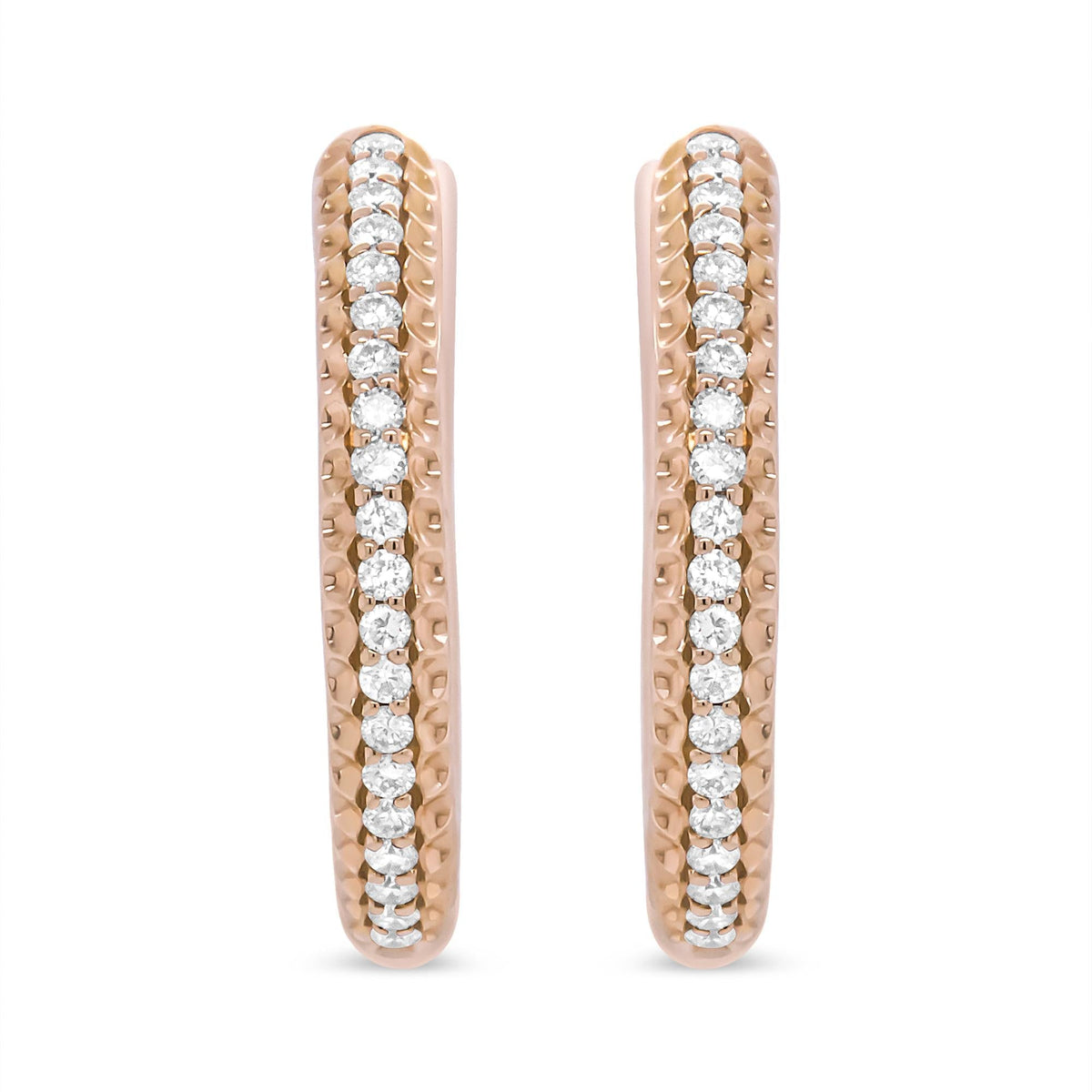 18K Rose Gold 1/3 Cttw Round Cut Diamond Hoop Earrings (F-G Color, VS1-VS2 Clarity)