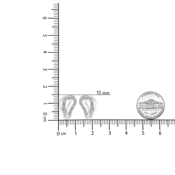 These .925 Sterling Silver Pave-Set Diamond Accent Horseshoe Hoop Earrings by Haus of Brilliance are unique and stylish. The hoops feature pave-set diamonds in the shape of a horseshoe, set in sterling silver. With a total diamond weight of 1/10 cttw, these earrings offer a fun and elegant look, perfect for adding sparkle to your outfit.