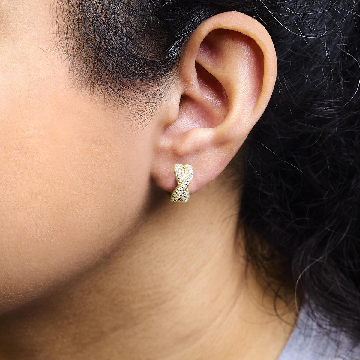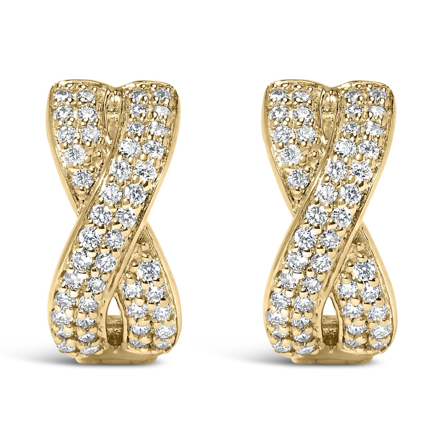 14K Yellow Gold 1/3 Cttw Diamond Criss Cross Huggie Hoop Earrings (G-H Color, SI2-I1 Clarity)