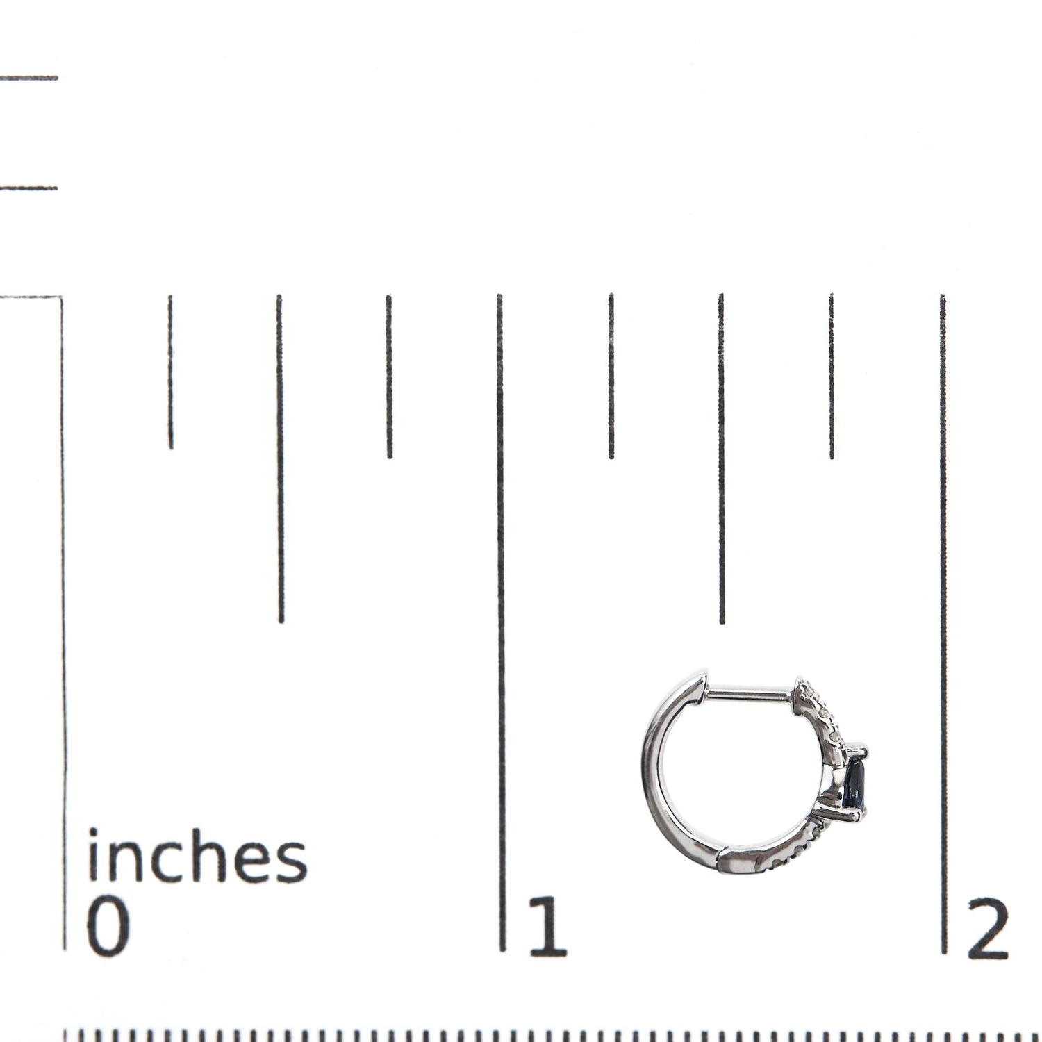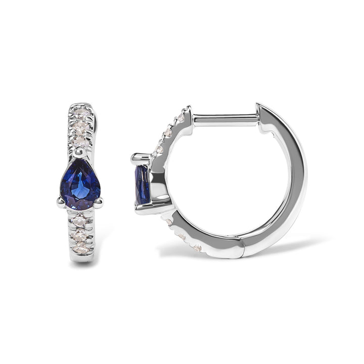 10K White Gold Pear Shaped Blue Sapphire and 1/10 Cttw Diamond Huggy Hoop Earrings (H-I Color, I1-I2 Clarity)