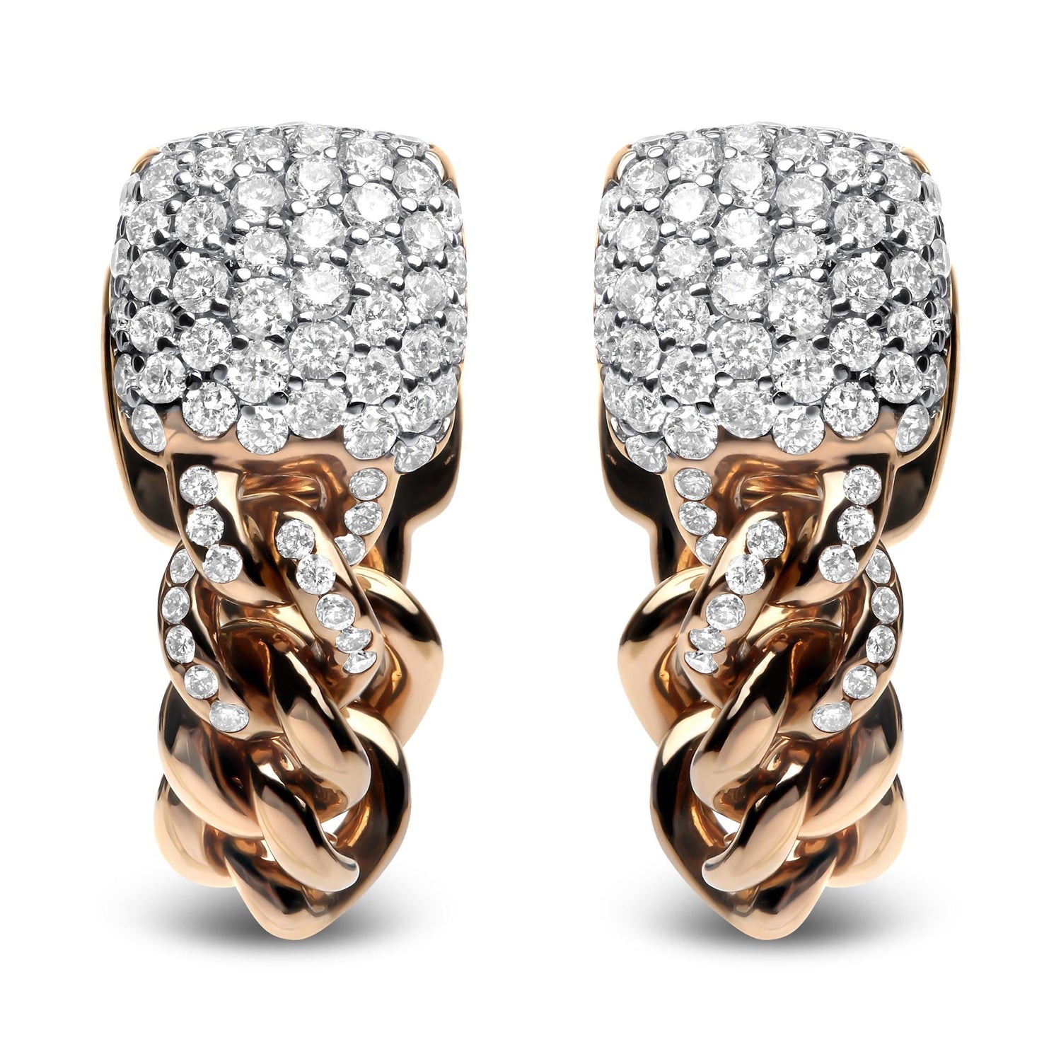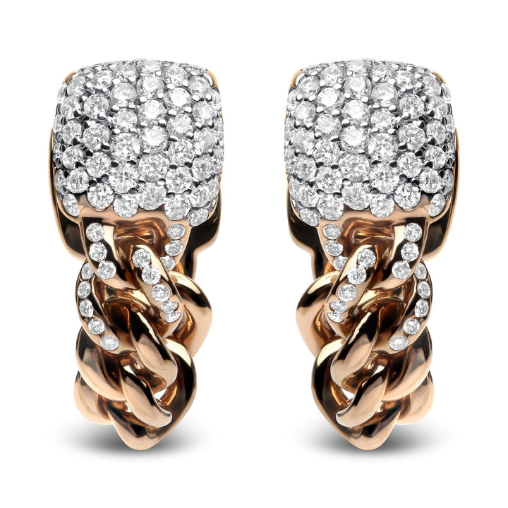 18K Rose Gold 3/4 Cttw Round Diamond Pave Cuban Chain Huggie Earrings (G-H Color, SI1-SI2 Clarity)