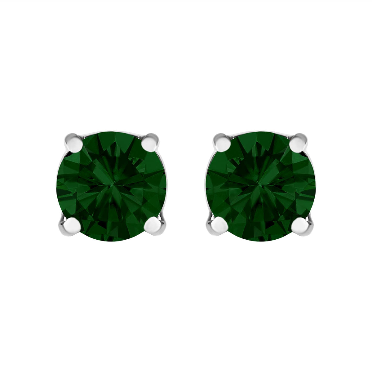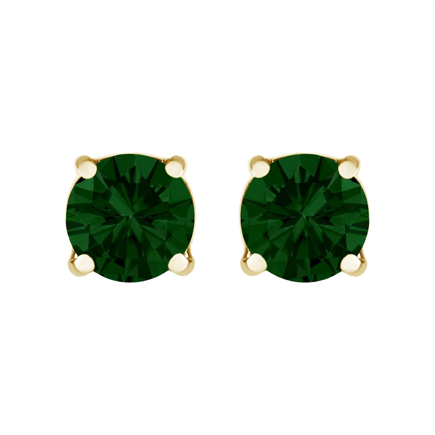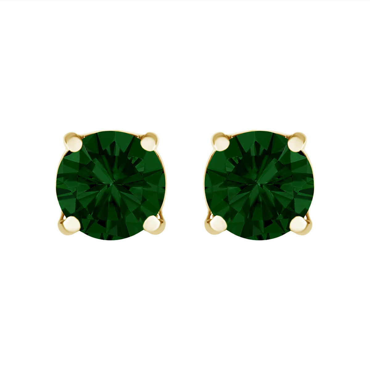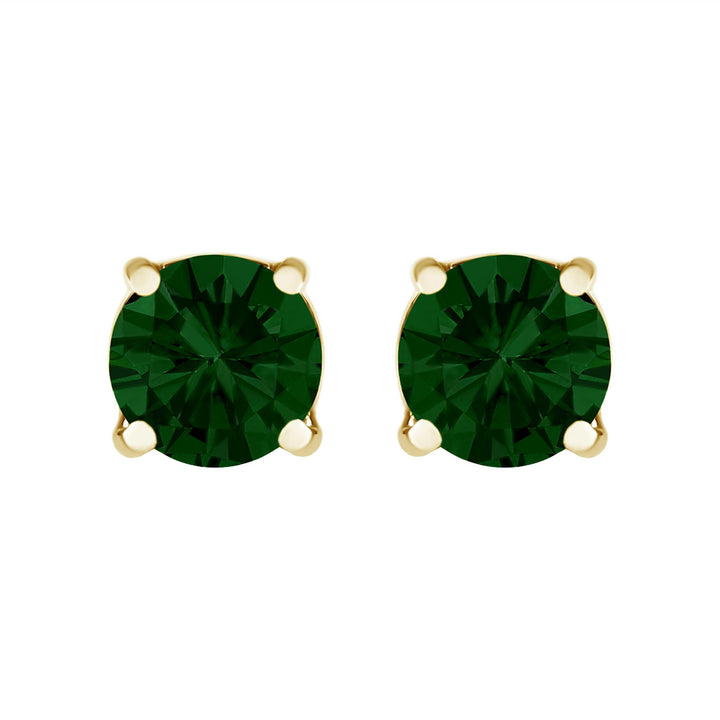 14K Gold Lab Grown Green Diamond Classic Solitaire Stud Earrings