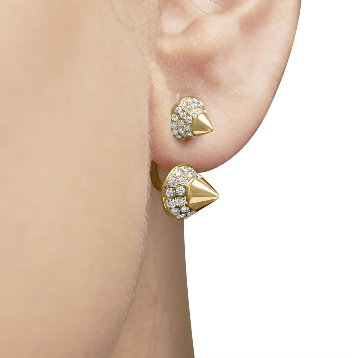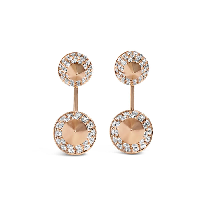 Handcrafted in 14K rose gold with 1.00 Cttw diamonds (G-H color, SI1-SI2 clarity). Earrings feature a double cone design and push-back closures.