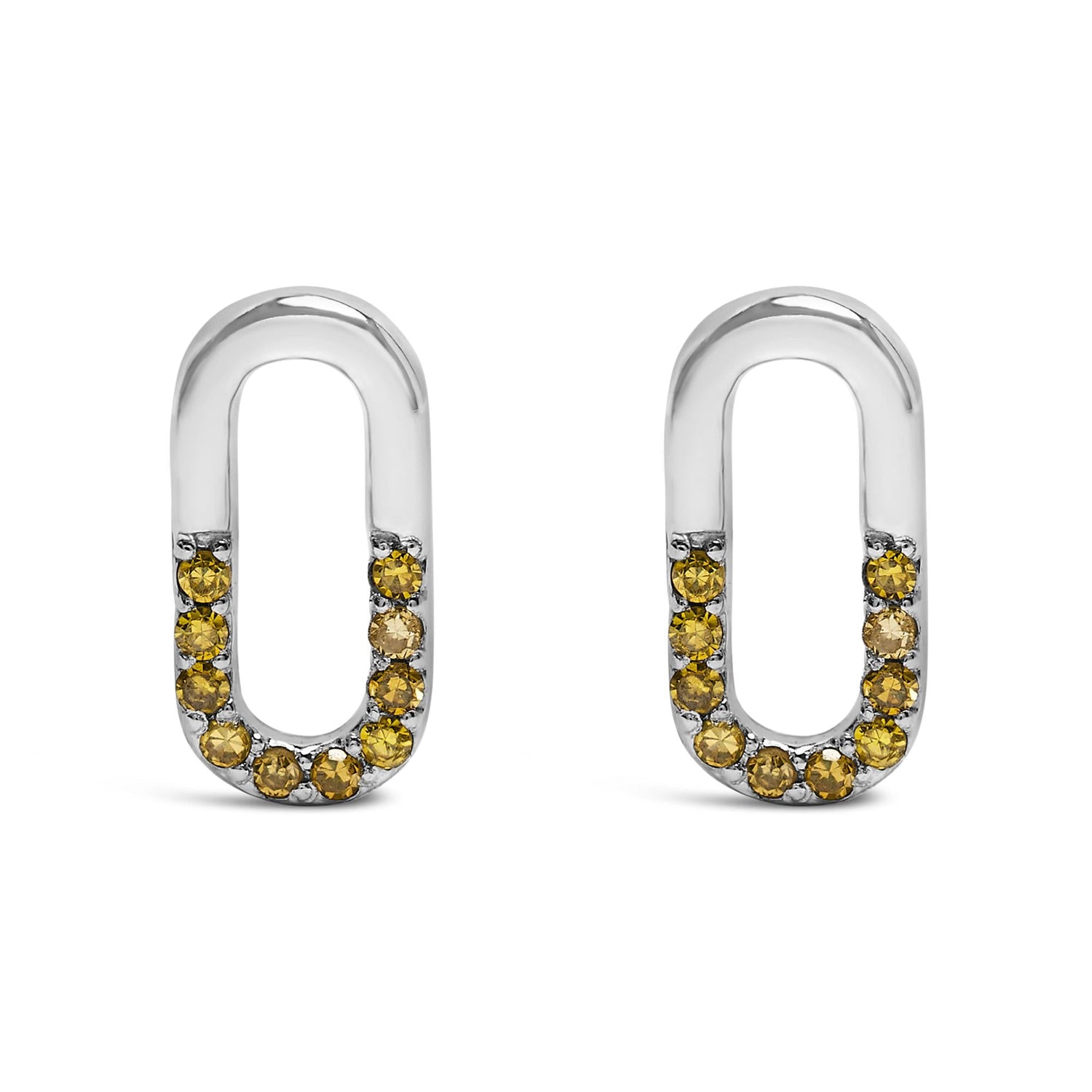 925 Sterling Silver 1/10 Yellow Diamond Diamond Paperclip Stud Earrings (Yellow, SI1-SI2 Clarity)