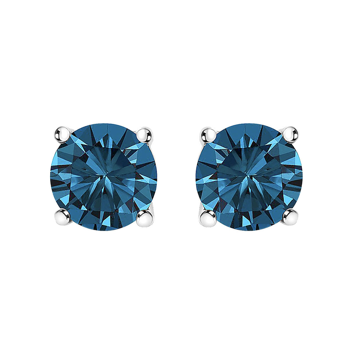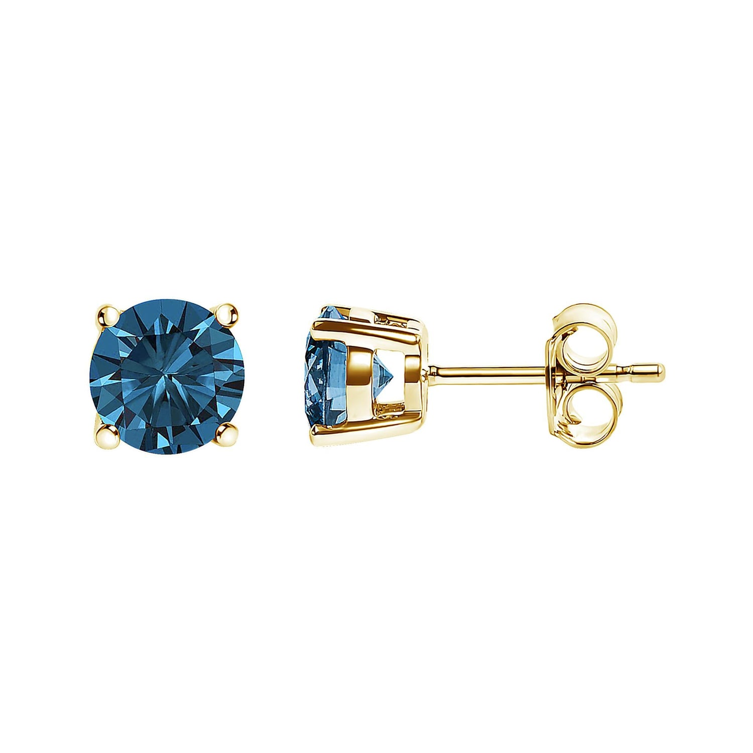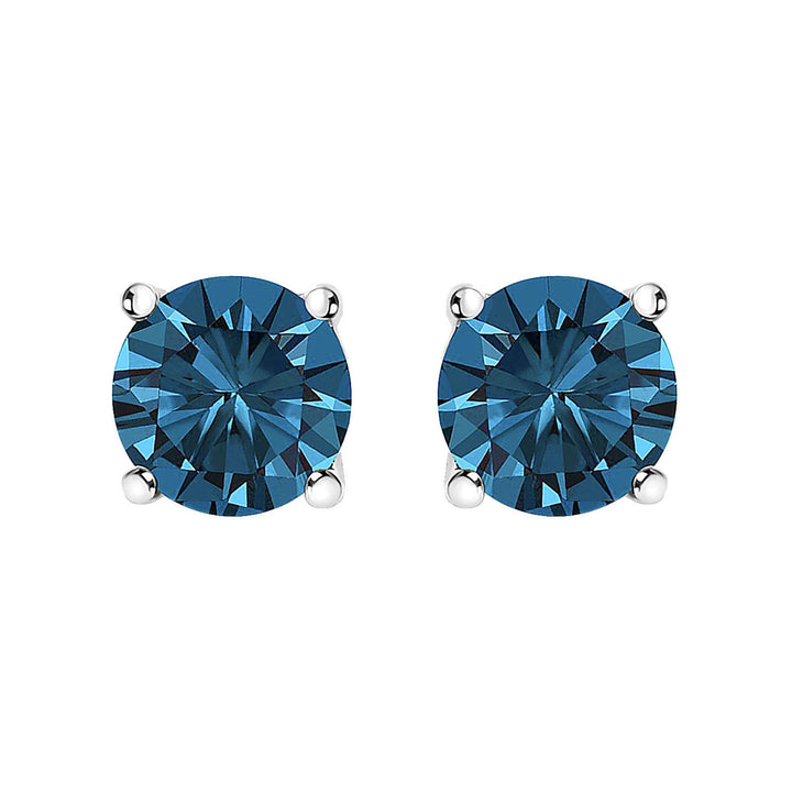 14K Gold Round Brilliant Cut Lab Grown Blue Diamond 4-Prong Classic Solitaire Stud Earrings with Pushbacks