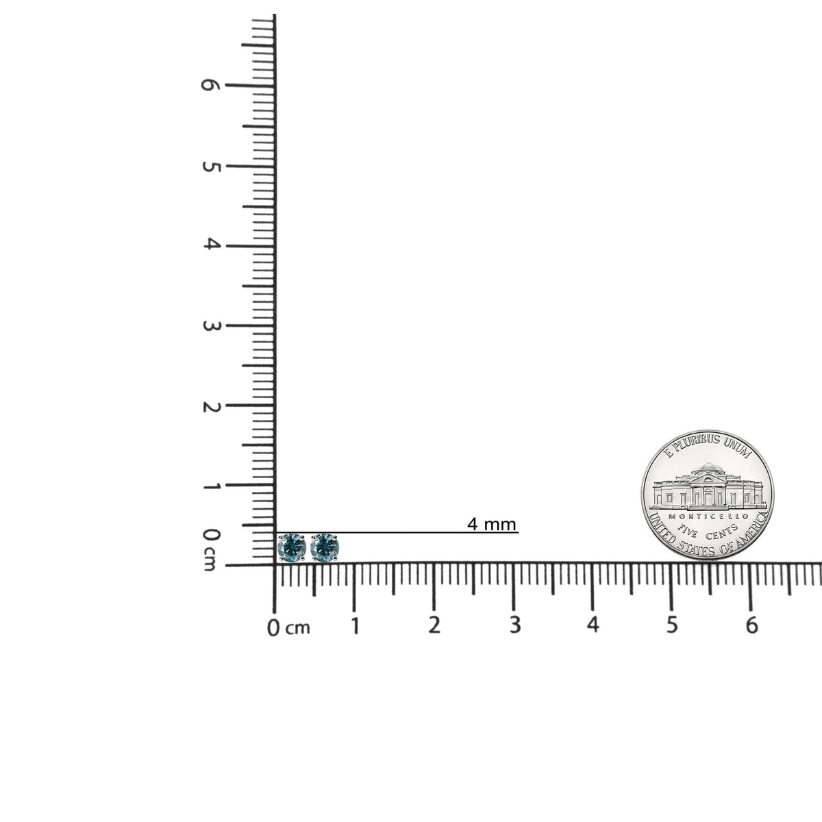 Crafted in 14K white gold with two lab-grown round brilliant-cut blue diamonds totaling 1/2 cttw. 4-prong settings. Push-back closures.