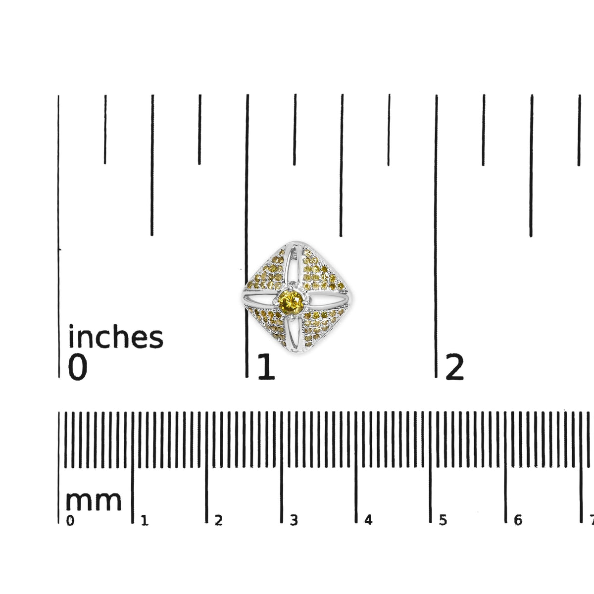 .925 Sterling Silver 1.0 Cttw Yellow Diamond Studded Rhombus Stud Earring (Yellow Color, I2-I3 Clarity)