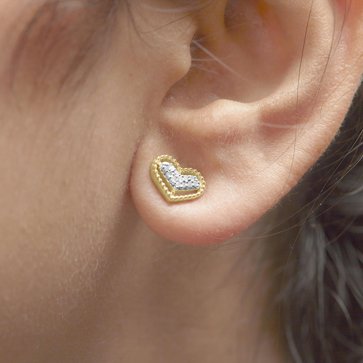 10K Yellow Gold 1/10 Cttw Diamond Heart and Beaded Halo Stud Earrings (I-J Color, I1-I2 Clarity)
