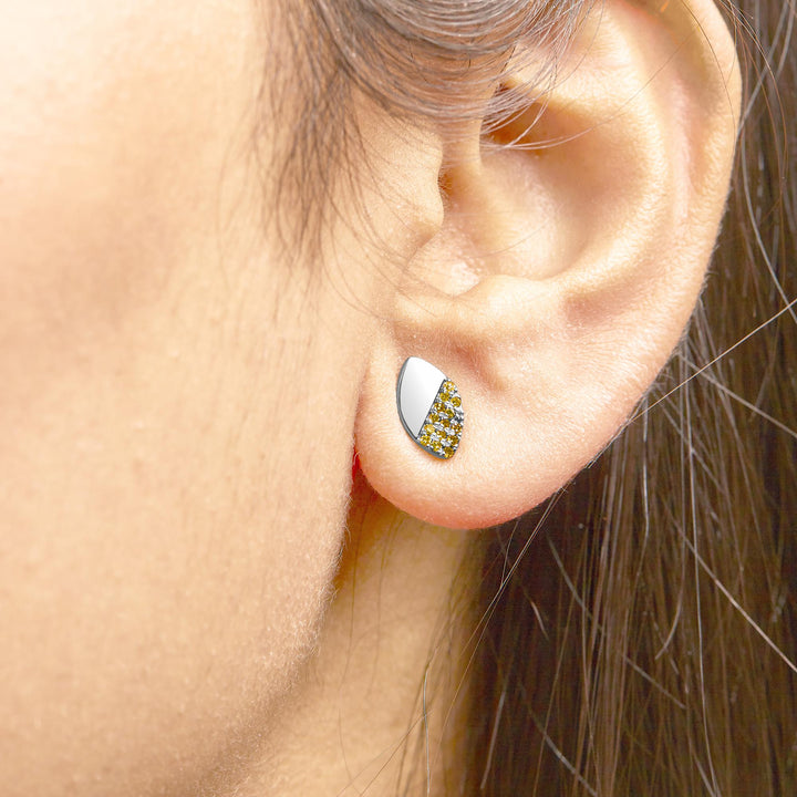 These .925 Sterling Silver 1/6 Cttw Yellow Diamond and Mirror Polish Pear Shape Stud Earrings by Haus of Brilliance are a stunning blend of contemporary design and classic elegance. The pear-shaped design features half adorned with natural yellow diamonds, treated to enhance their vibrant hue, and the other half with a mirror polish for added contrast. The diamonds are I2-I3 clarity, ensuring a radiant sparkle. These earrings are secured with push-back closures, offering a blend of style and security for everyday wear.