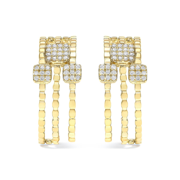 14K Yellow Gold Plated .925 Sterling Silver 1/4 Cttw Diamond Multi-Dimensional Link Dangle Stud Earrings (H-I Color, I1-I2 Clarity)