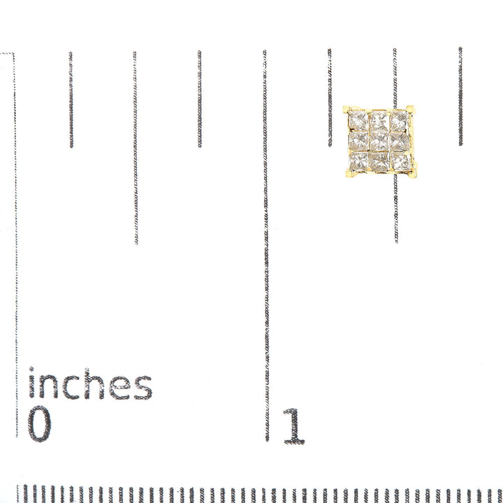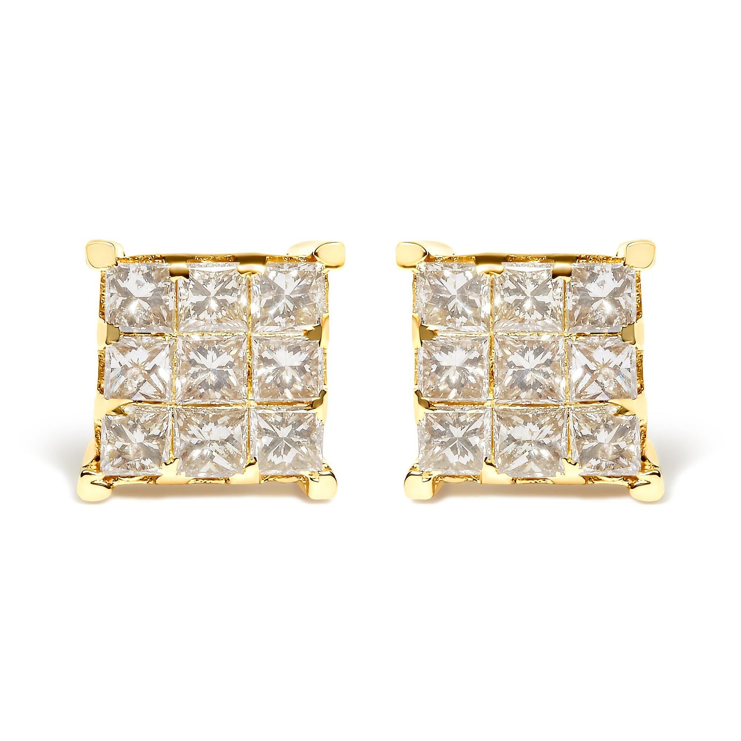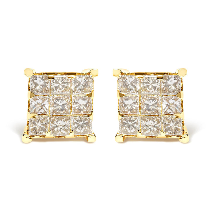 14K Yellow Gold 1 1/2 Cttw Invisible Set Princess-Cut Diamond 9 Stone Square Stud Earrings (J-K Color, SI2-I1 Clarity)