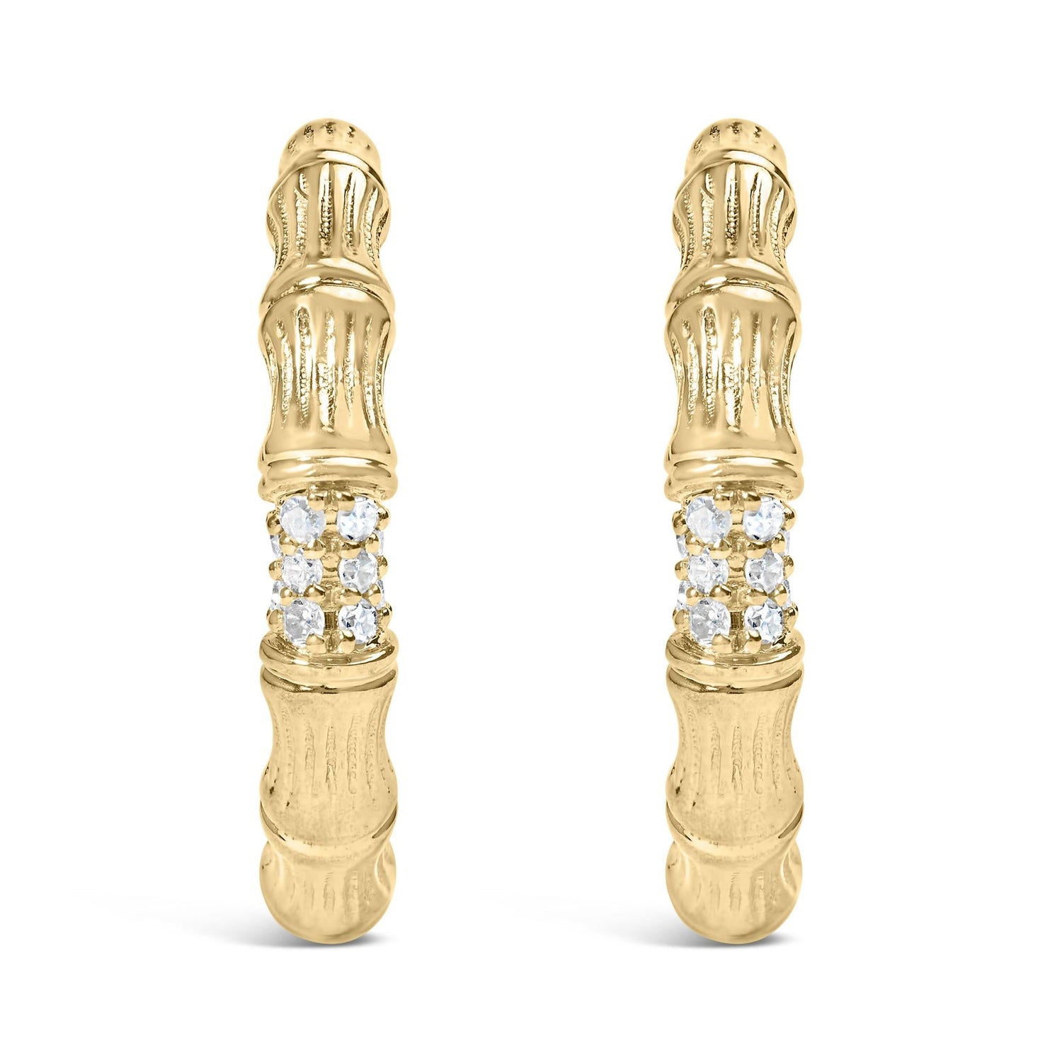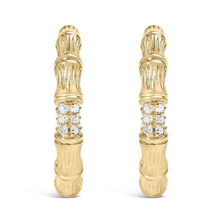 14K Yellow Gold Plated .925 Sterling Silver 1/6 Cttw Hammered J Hoop Earrings (H-I Color, I1-I2 Clarity)