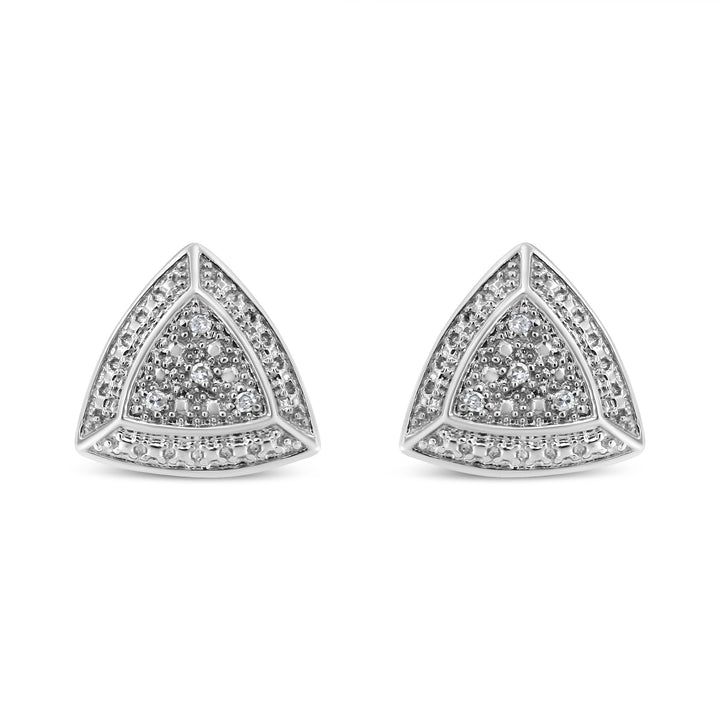 These .925 Sterling Silver Diamond-Accented Trillion Shaped Stud Earrings by Haus of Brilliance offer a modern floral twist on classic sparkle. A mix of four round brilliant diamonds and faceted metal studs create the illusion of a radiant diamond cluster within a trillion silhouette. The domed profile and sculptural borders add a tactile dimension, while secure push-back closures make them ideal for everyday wear or polished evenings.