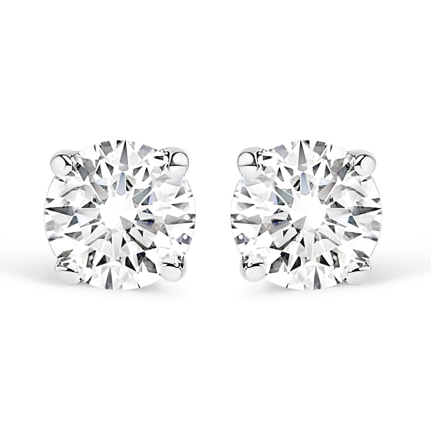 Crafted in 14K white gold with two round brilliant-cut diamonds totaling 3/4 carat (H-I color, SI1-SI2 clarity). Pushback closure with notched friction posts for sizes under 1.0 carat; screw back for sizes 1.0 carat and up.