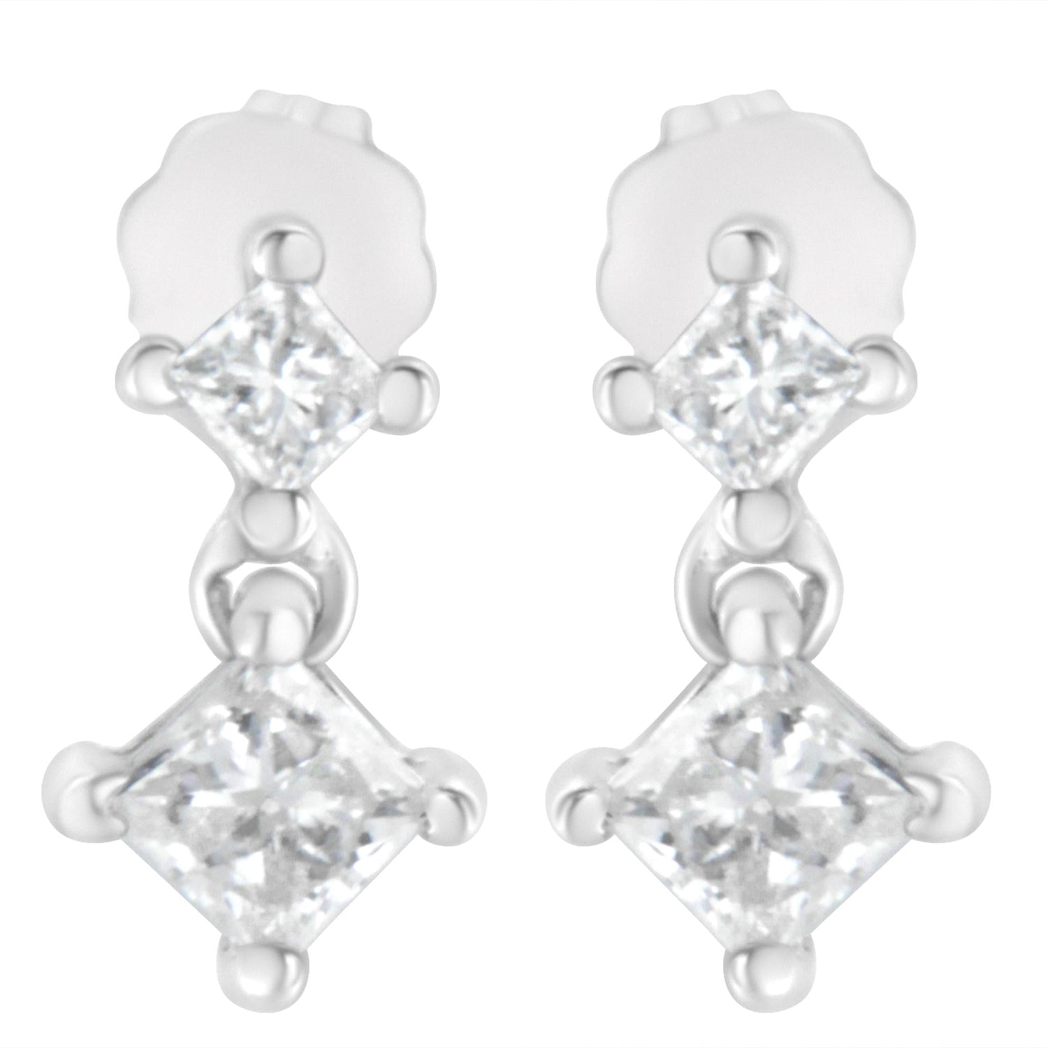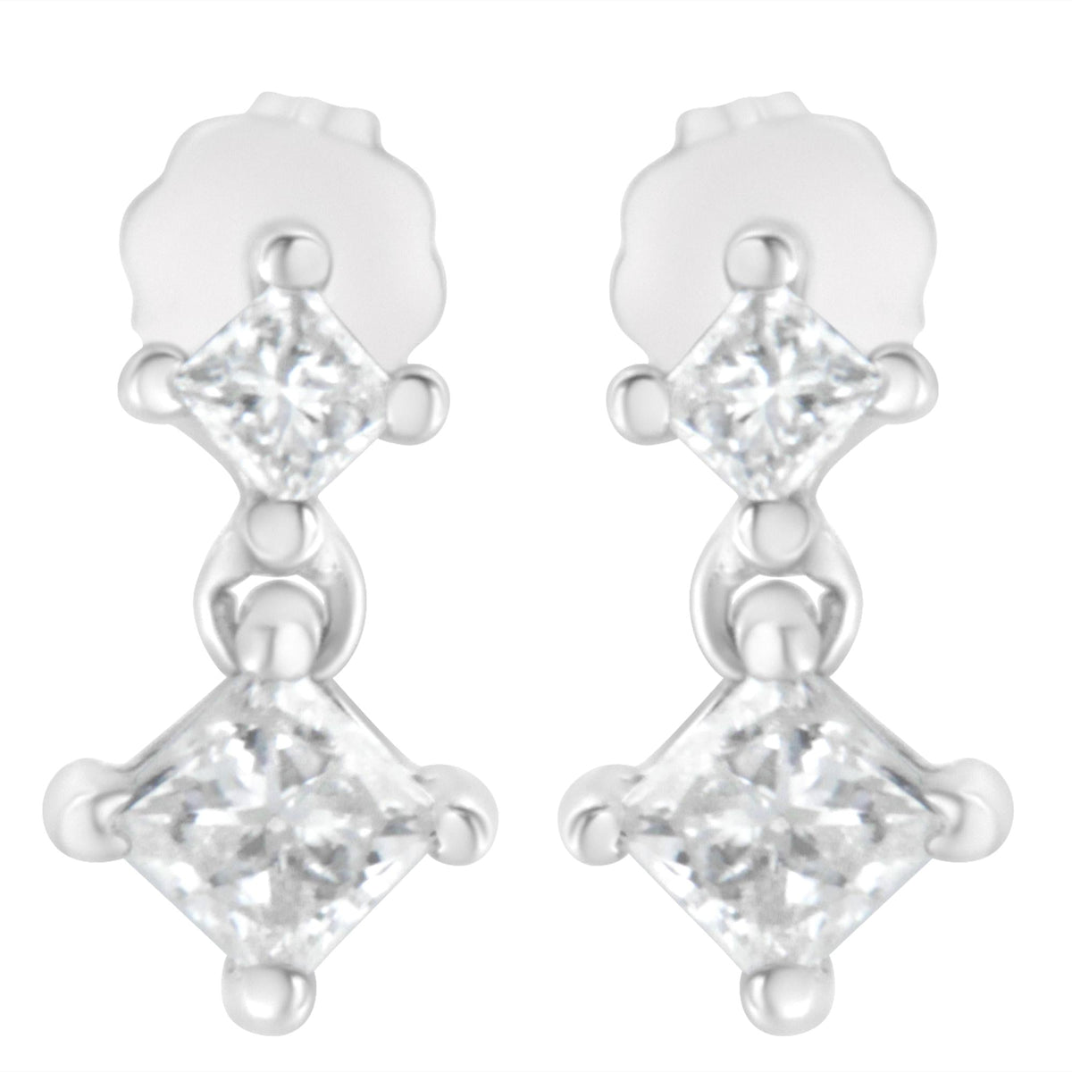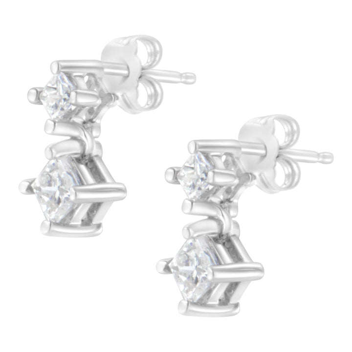 14K White Gold 3/4 cttw Double Diamond Princess-Cut Stud Earrings (I-J Clarity, I2-I3 Color)