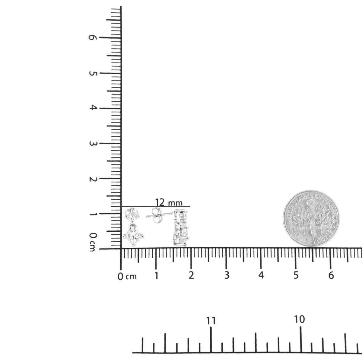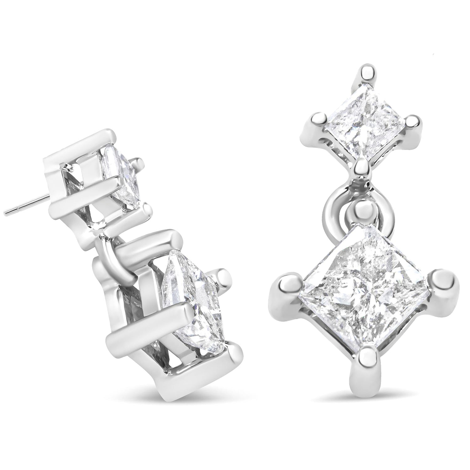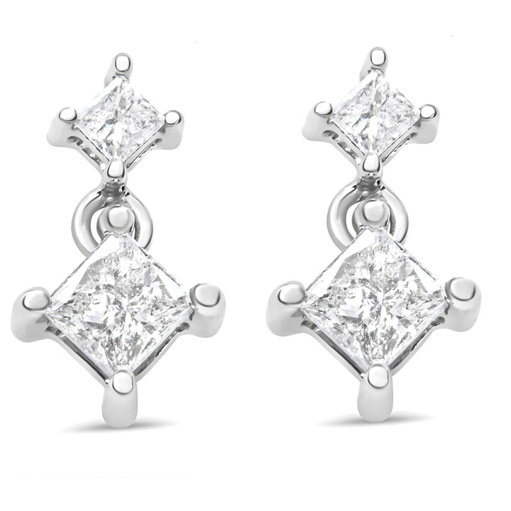 14K White Gold 1.0 Cttw Princess-Cut Double Diamond Drop Stud Earrings for Women (H-I Color, I1-I2 Clarity)