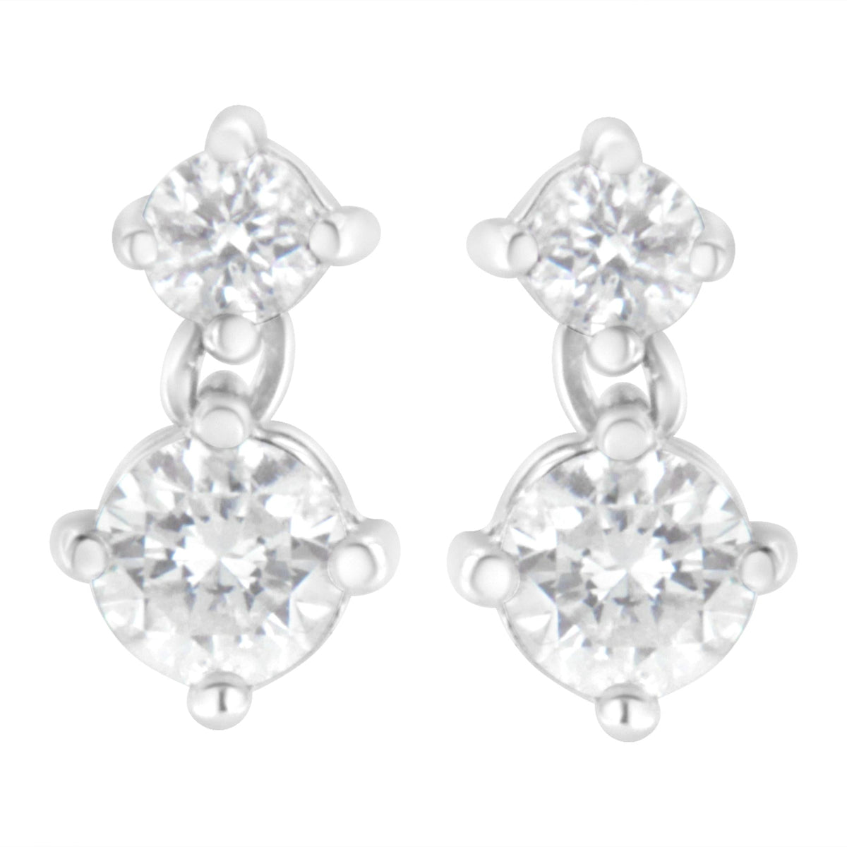 These 14K White Gold 1 Cttw Double Diamond Stud Earrings by Haus of Brilliance are a perfect balance of modern elegance and timeless style. The earrings feature two stunning round-cut diamonds set in 14K white gold. These push-back earrings provide a secure fit and are perfect for everyday wear or a formal occasion.