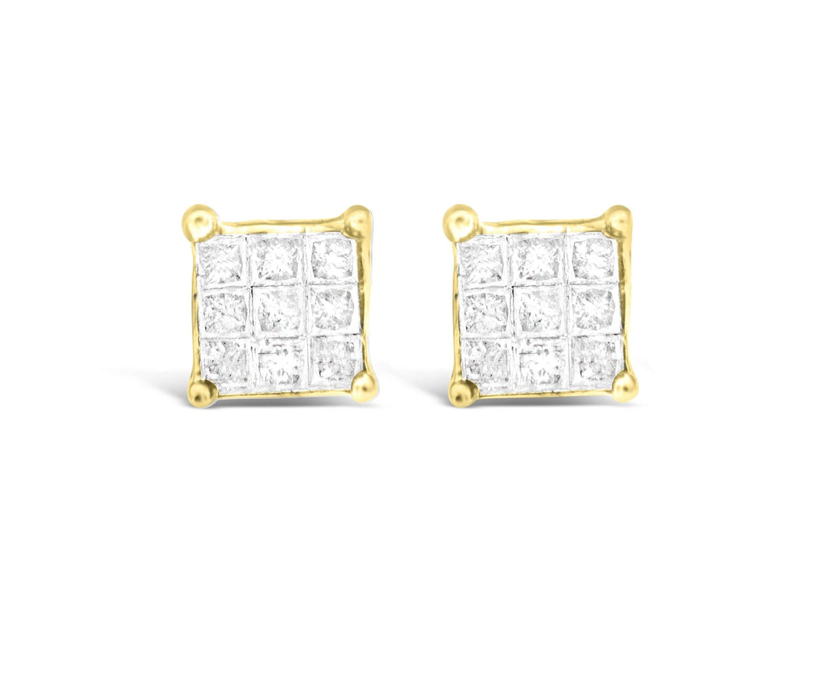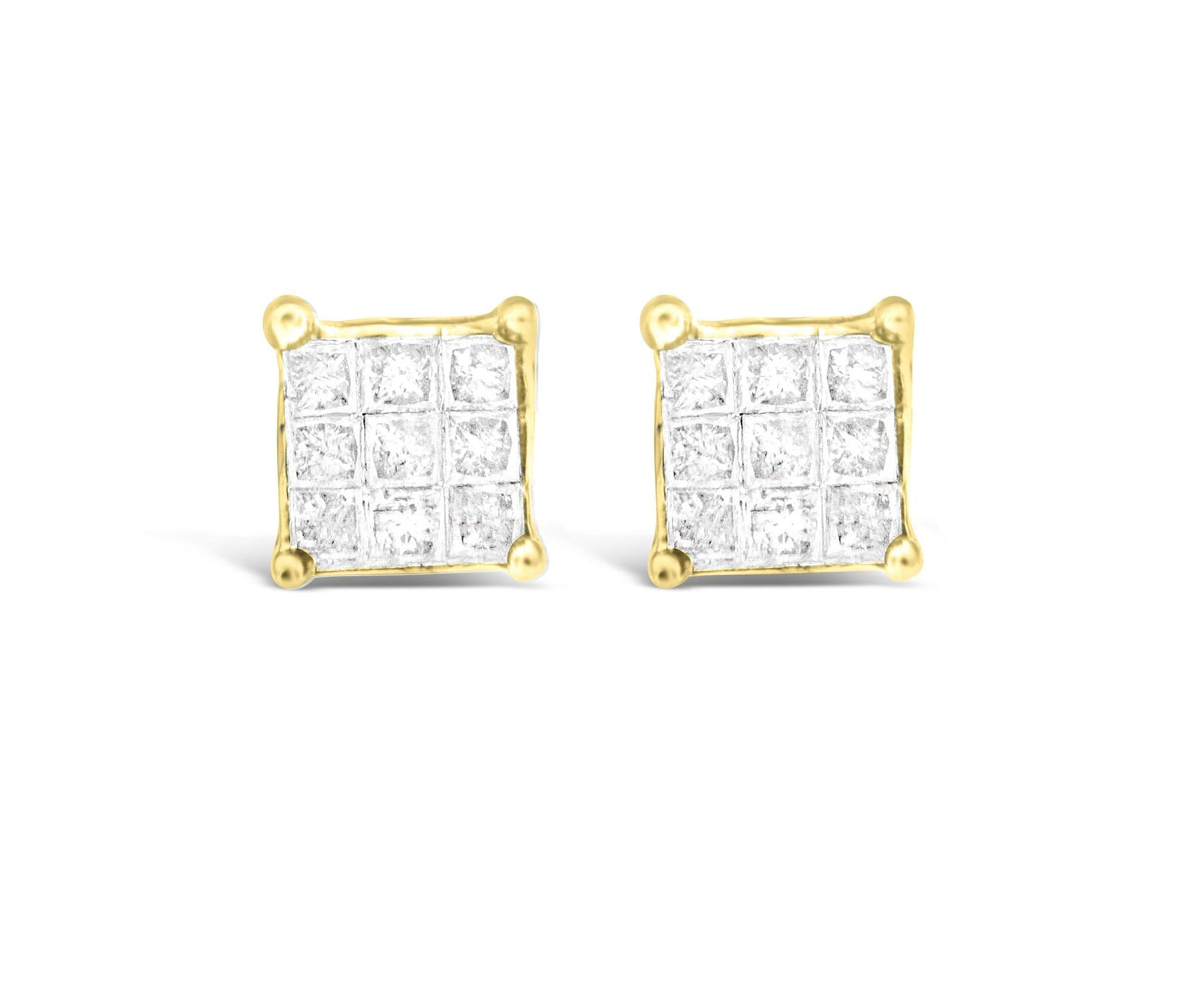 10K Yellow Gold Princess-cut Composite 18-stone Diamond Earrings (0.25 CTTW, J-K color, I2-I3 clarity)