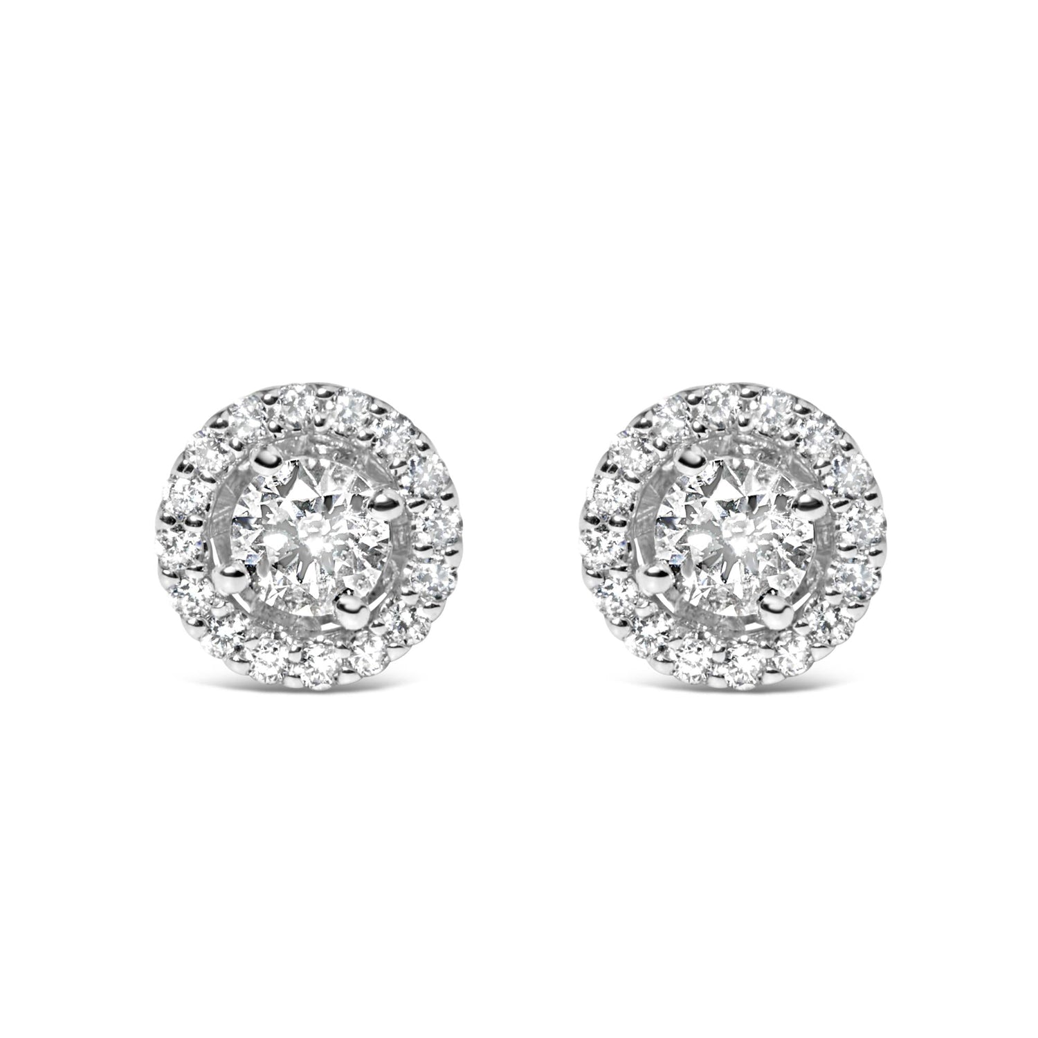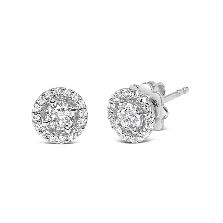 14K White Gold 3/4 Cttw Lab Grown Diamond Solitaire With Halo Stud Earrings (G-H Color, VS2-SI1 Clarity)
