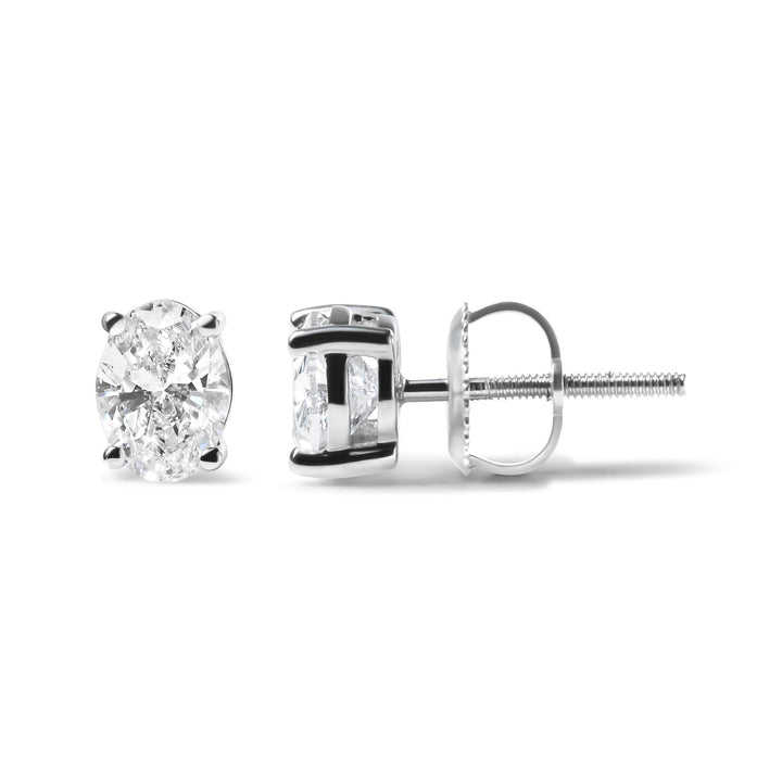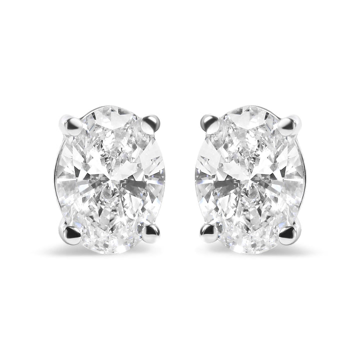 14K White Gold Prong Set Lab Grown Oval Diamond Solitaire Stud Earring (F-G Color, VS1-VS2 Clarity)