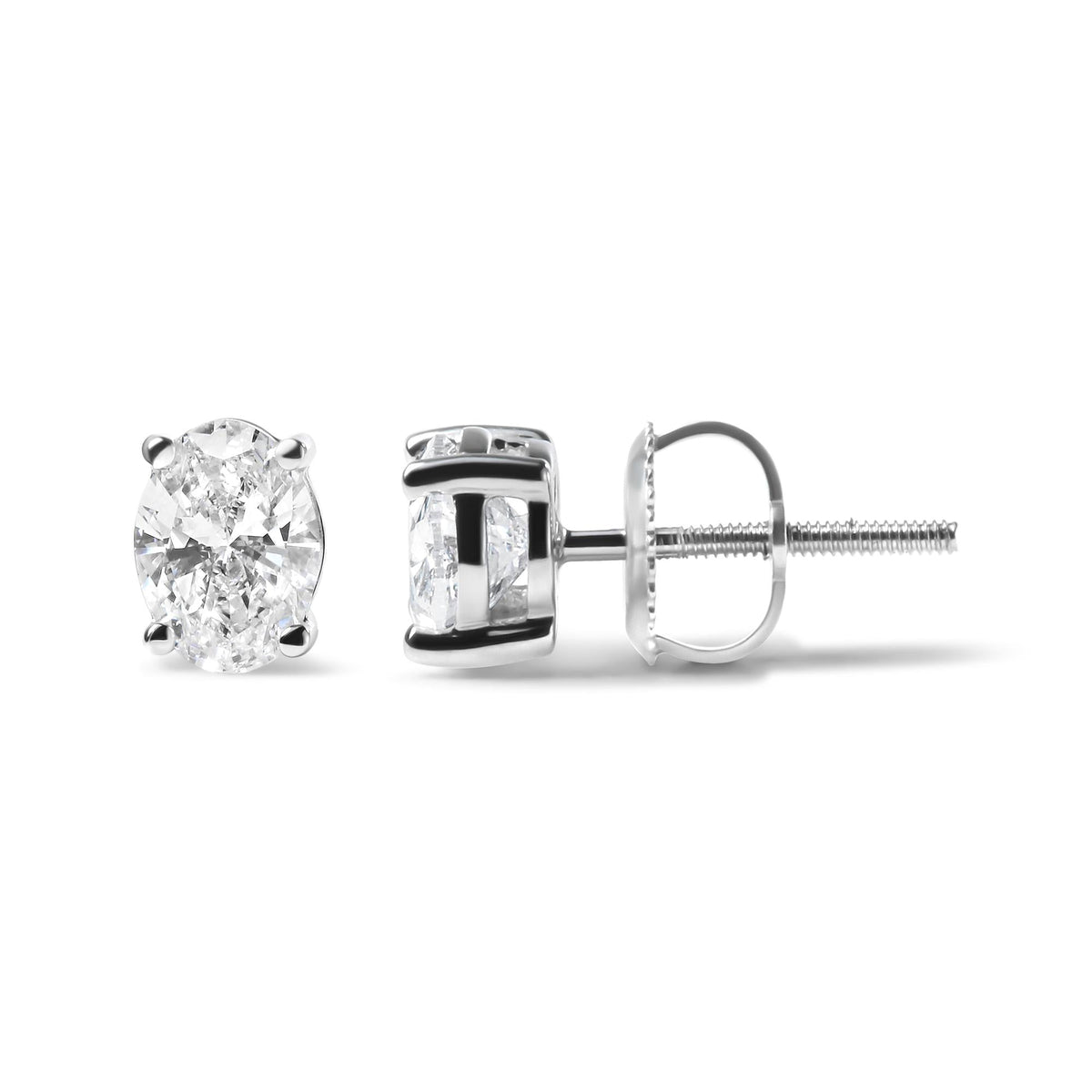 14K white gold, 3/4 Cttw lab-grown oval diamonds, F-G color, VS1-VS2 clarity. Push back findings.