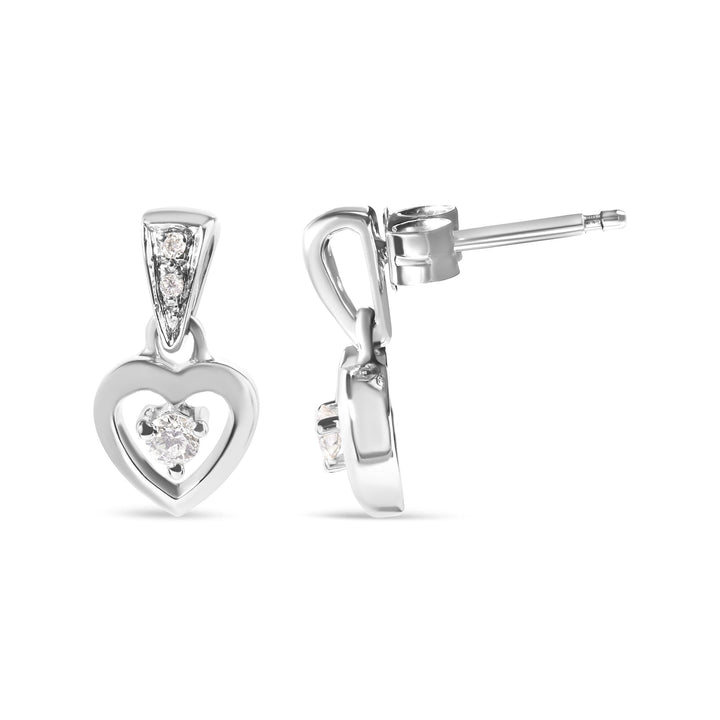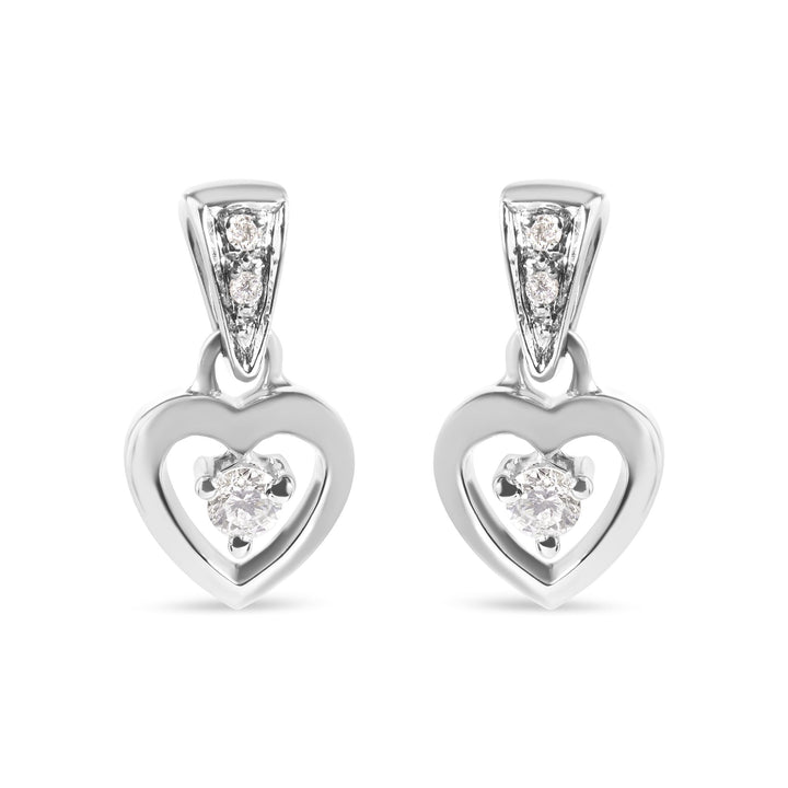 14K White Gold 1/6 Cttw Diamond Dangle Heart Stud Earrings (H-I, SI2-I1)