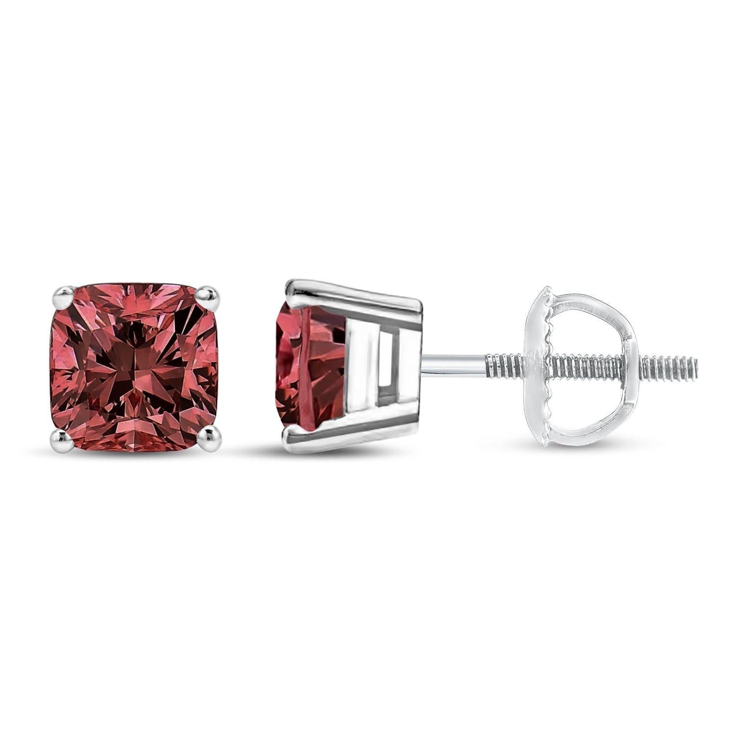 14K White Gold Lab Grown Pink Cushion 4-Prong Set Classic Diamond Solitaire Stud Earrings (Pink Color, VS1-VS2 Clarity)