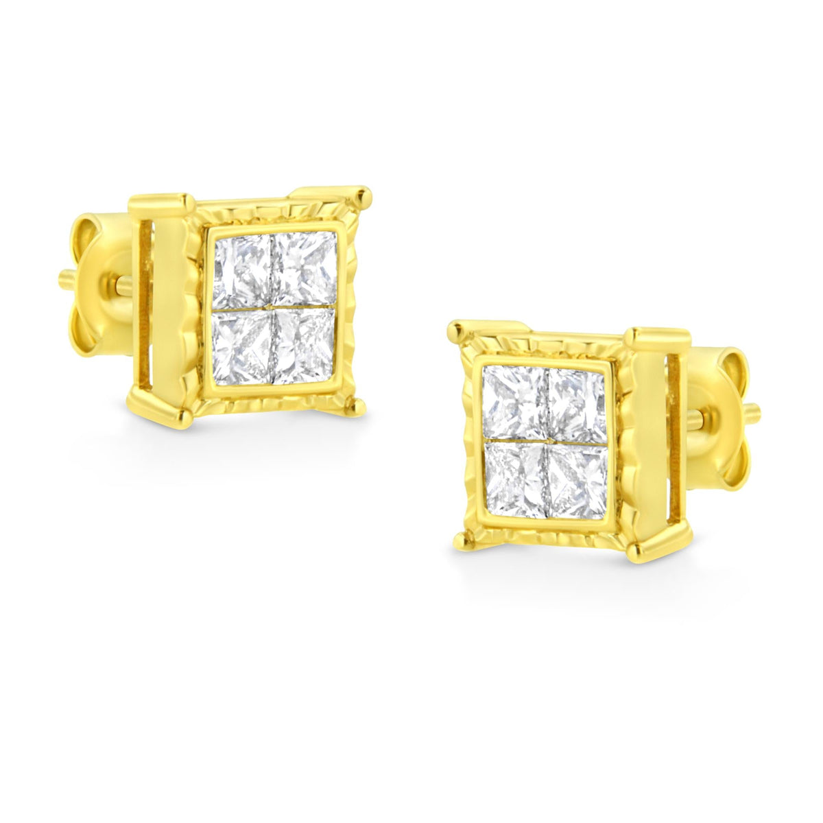 14K white gold, 1.0 Cttw round lab-grown diamonds, E-F color, VVS2-VS1 clarity, push back findings.
